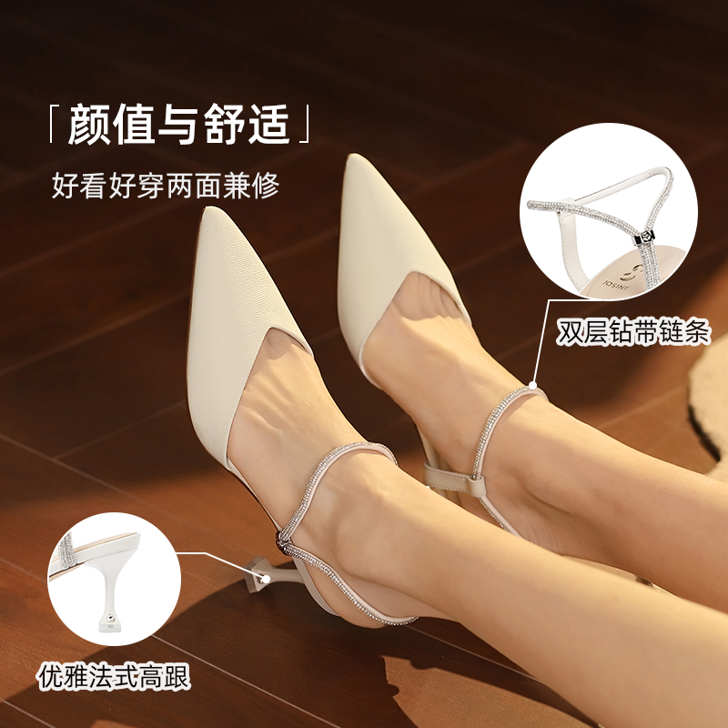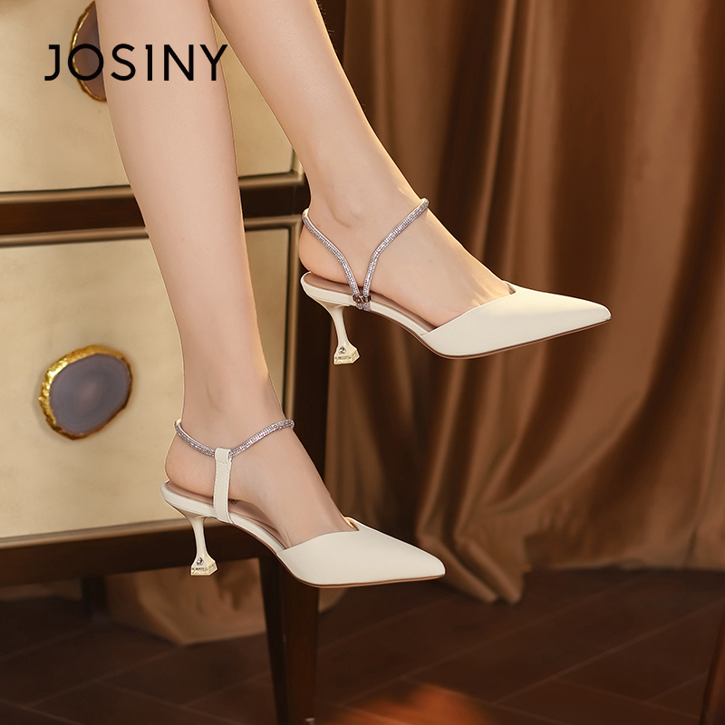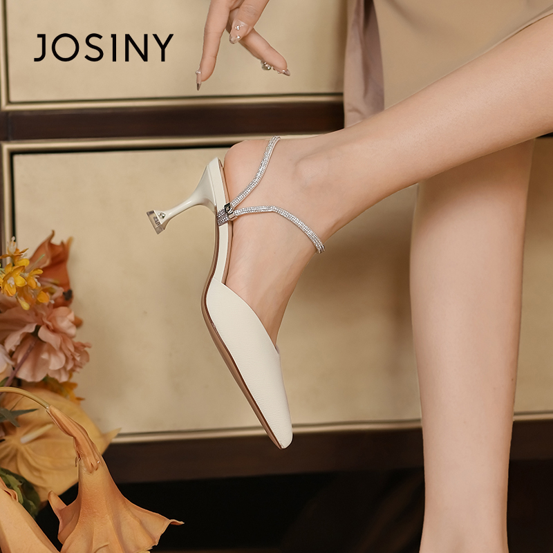 Josiny/卓诗尼包头凉鞋女2024夏季新款细跟单鞋法式高跟鞋一脚蹬