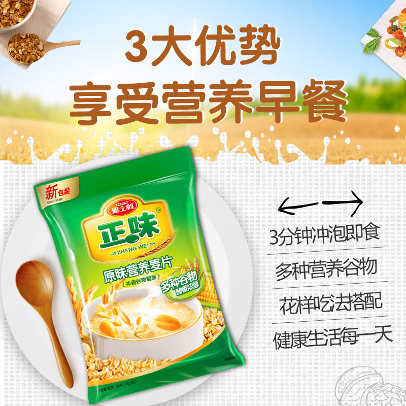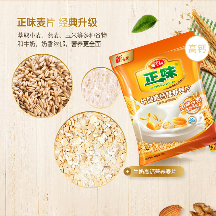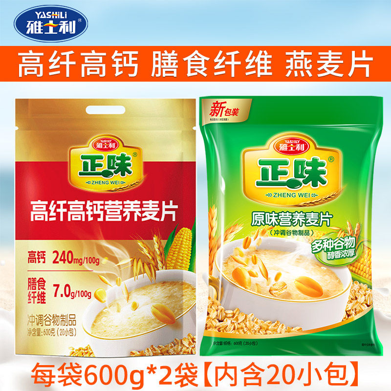 雅士利正味麦片600g原味牛奶高钙早餐营养冲饮谷物即食膳食燕麦片