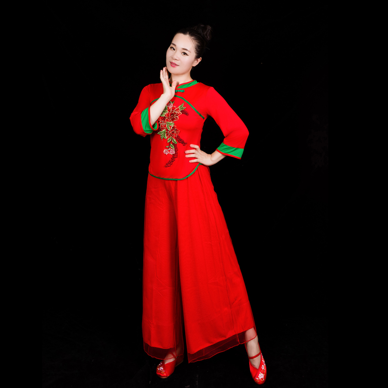 江西发春夏秧歌舞服装新款广场舞套装中老年扇子舞演出跳舞衣服