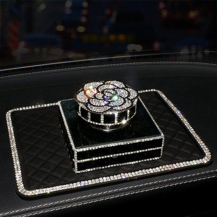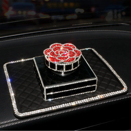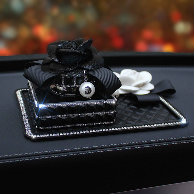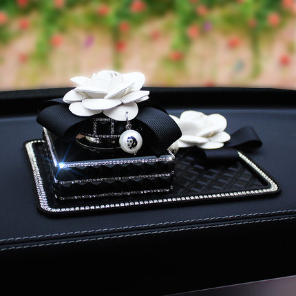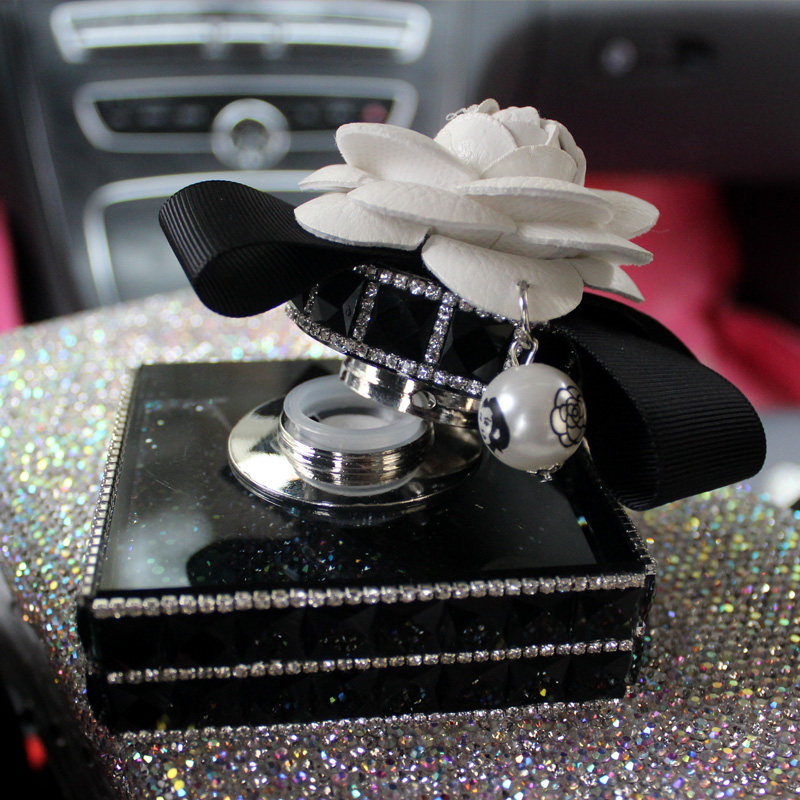 山茶花车载香水摆件 水晶镶钻汽车仪表台座式香水女新车清新除味