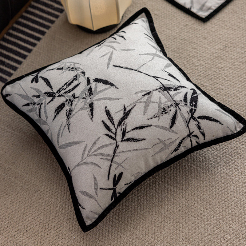 样板间高级感水墨竹韵抱枕艺术感