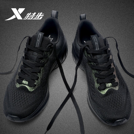 特步氢云跑步鞋男2025夏季新款减震男鞋网面透气鞋子全黑运动鞋男