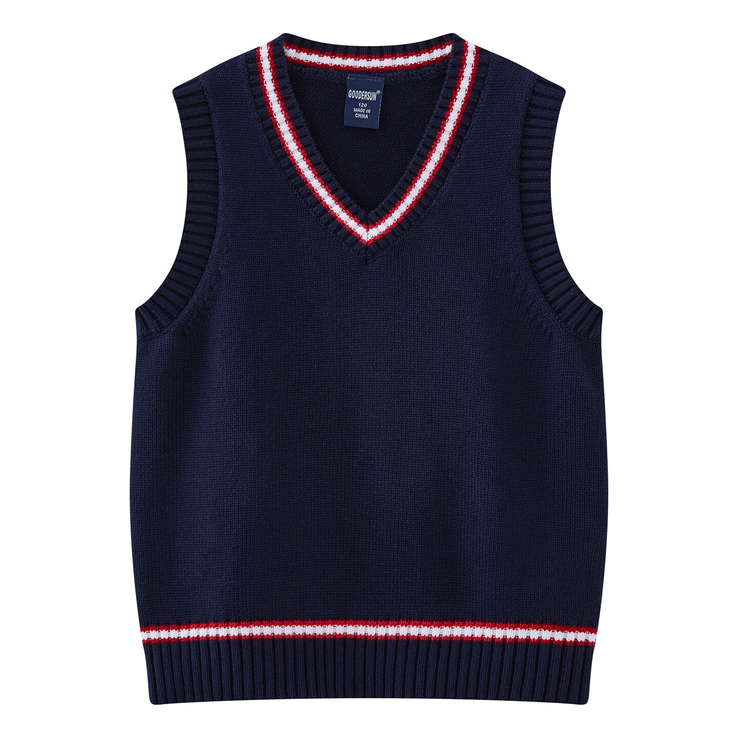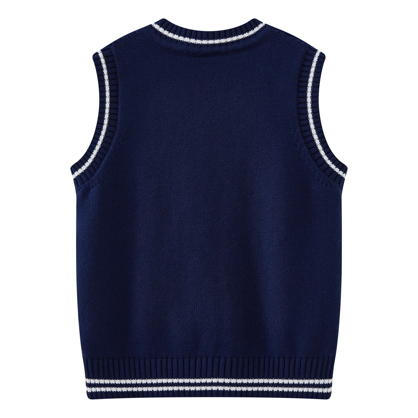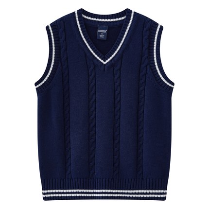 童装学院风绞花针织背心 男女童春秋款白色撞色条纹无袖毛衣马甲