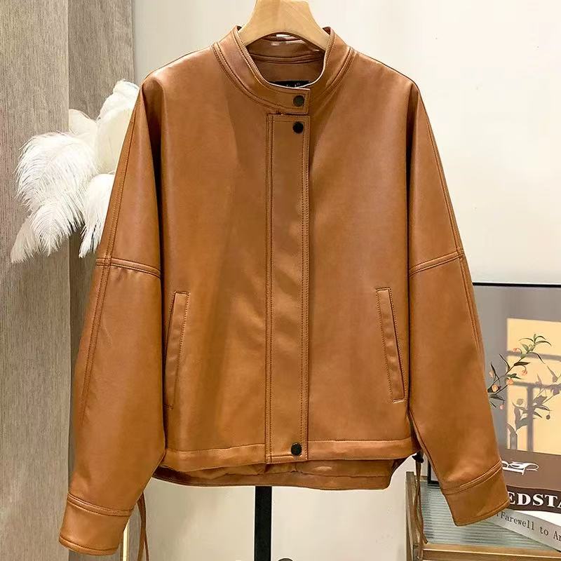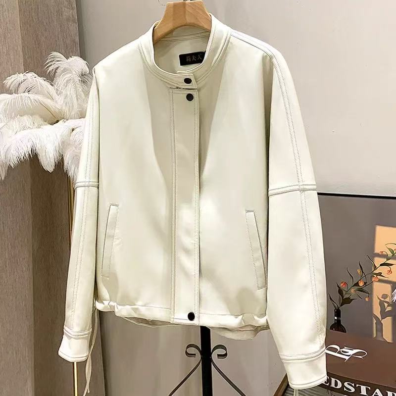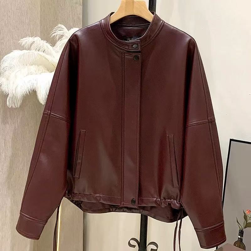 真皮皮衣女短款秋冬新款立领宽松黑色海宁绵羊皮夹克机车外套高级