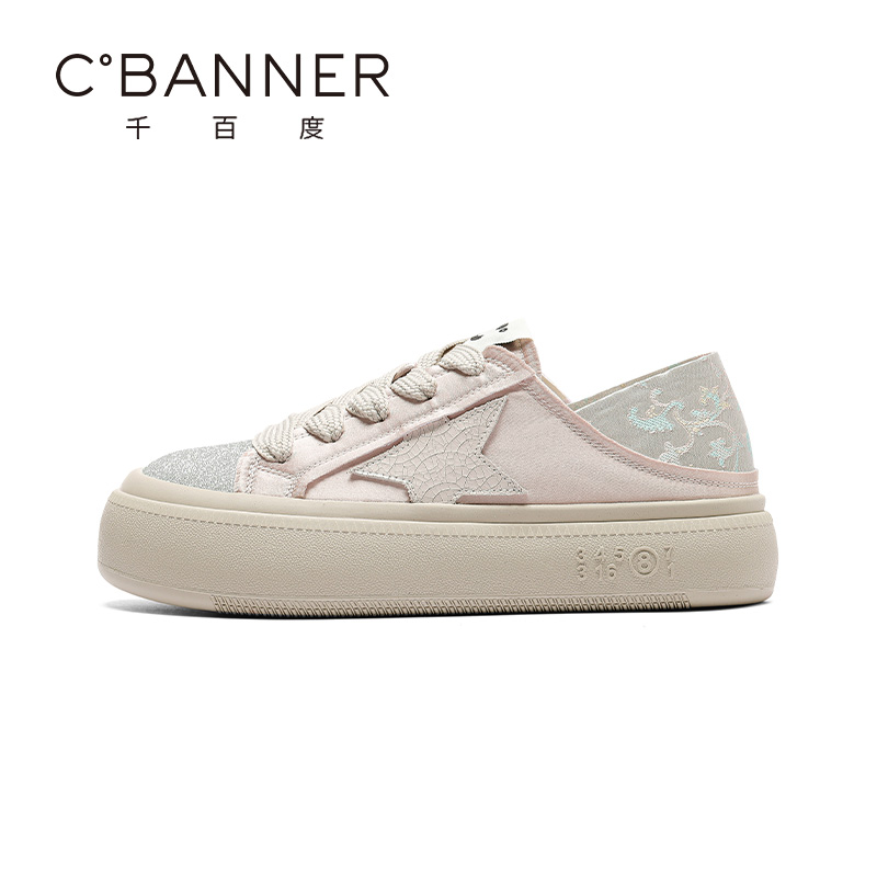 千百度休闲鞋女2025秋季新款星星板鞋百搭时尚舒适休闲运动鞋女鞋