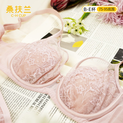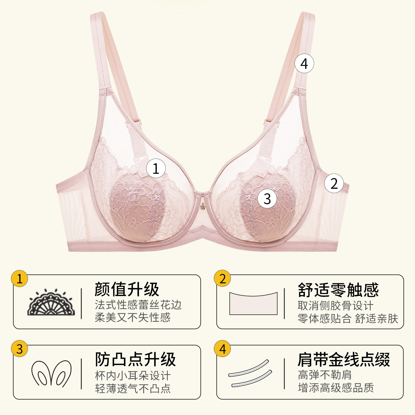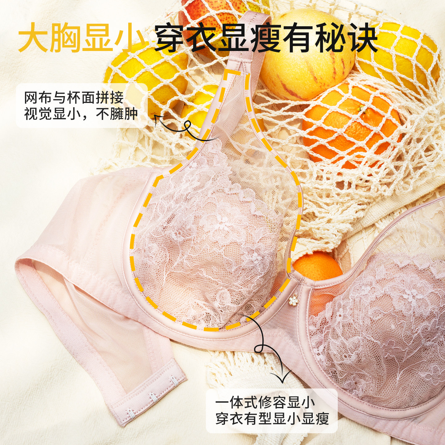 桑扶兰水滴杯大胸显小内衣防凸点防下垂收副乳粉底液性感蕾丝文胸