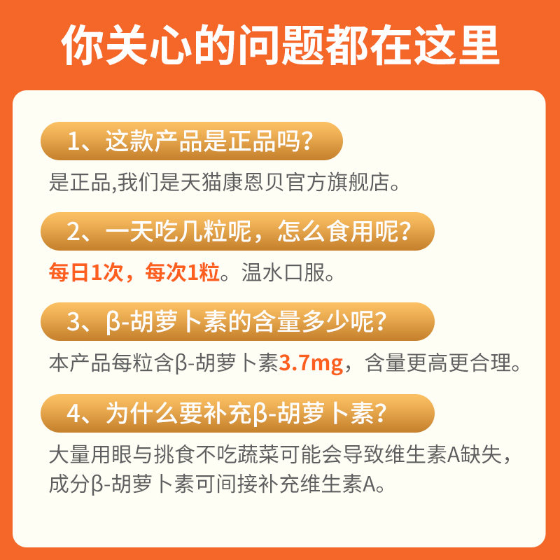 康恩贝β胡萝卜素软胶囊搭va维生素A搭叶黄素类胡萝卜素正品