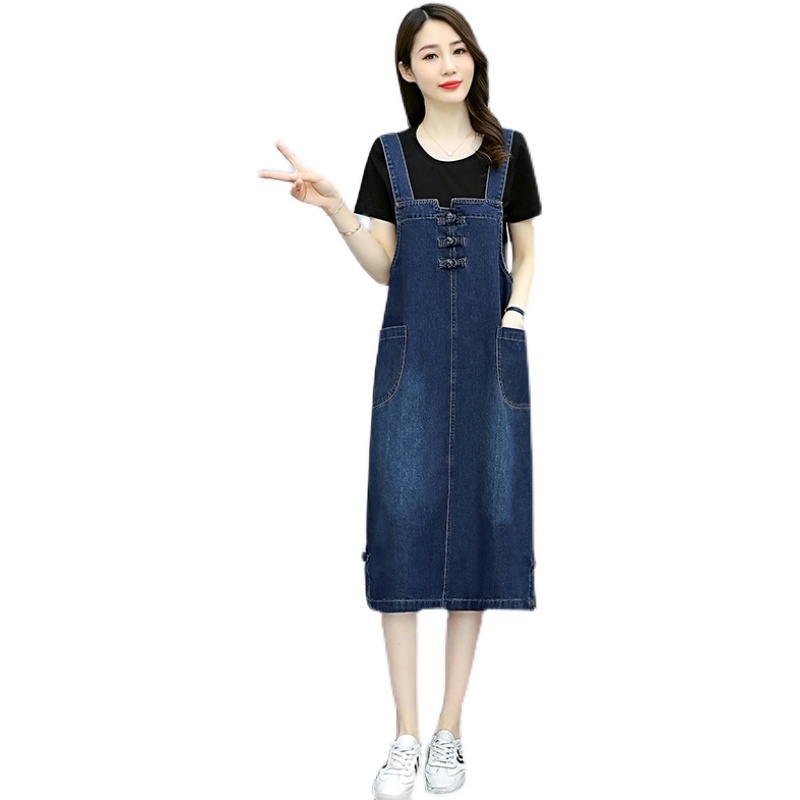 牛仔连衣裙女2025新款国风盘扣背带裙中式中长裙