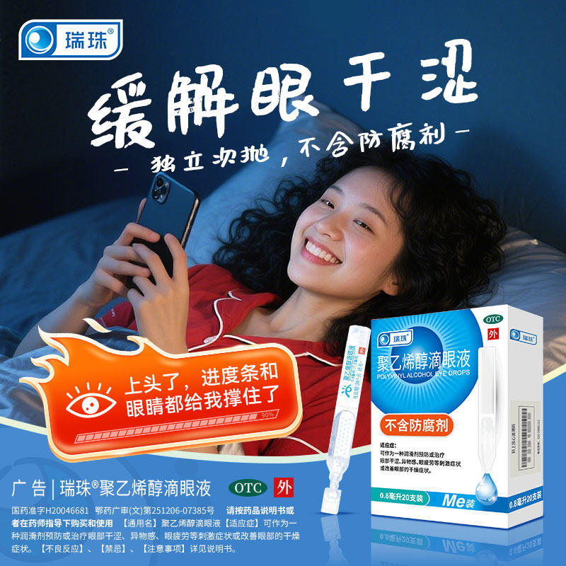 瑞珠聚乙烯醇滴眼液20支一次性人工泪液缓解眼干疲劳润眼护眼药水
