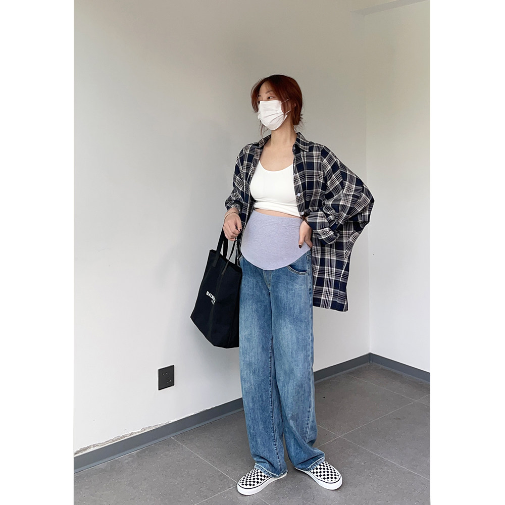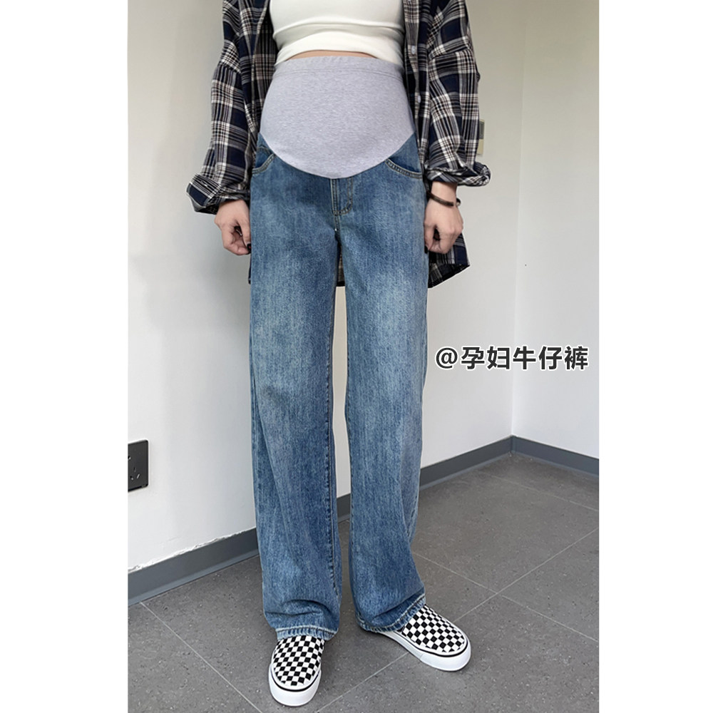 孕妇阔腿牛仔裤春秋季薄款外穿2025新款托腹直筒打底裤拖地长裤子