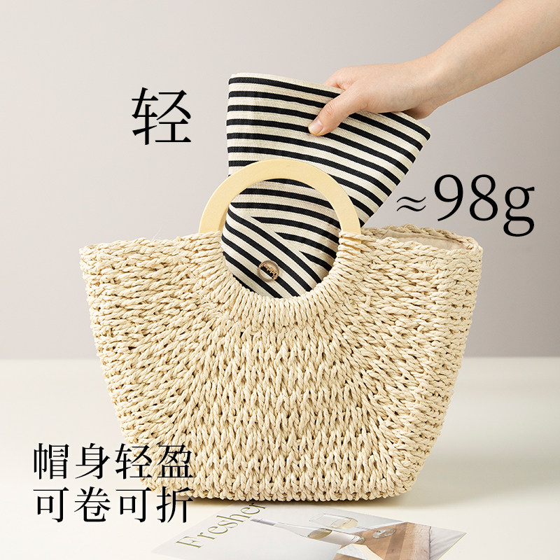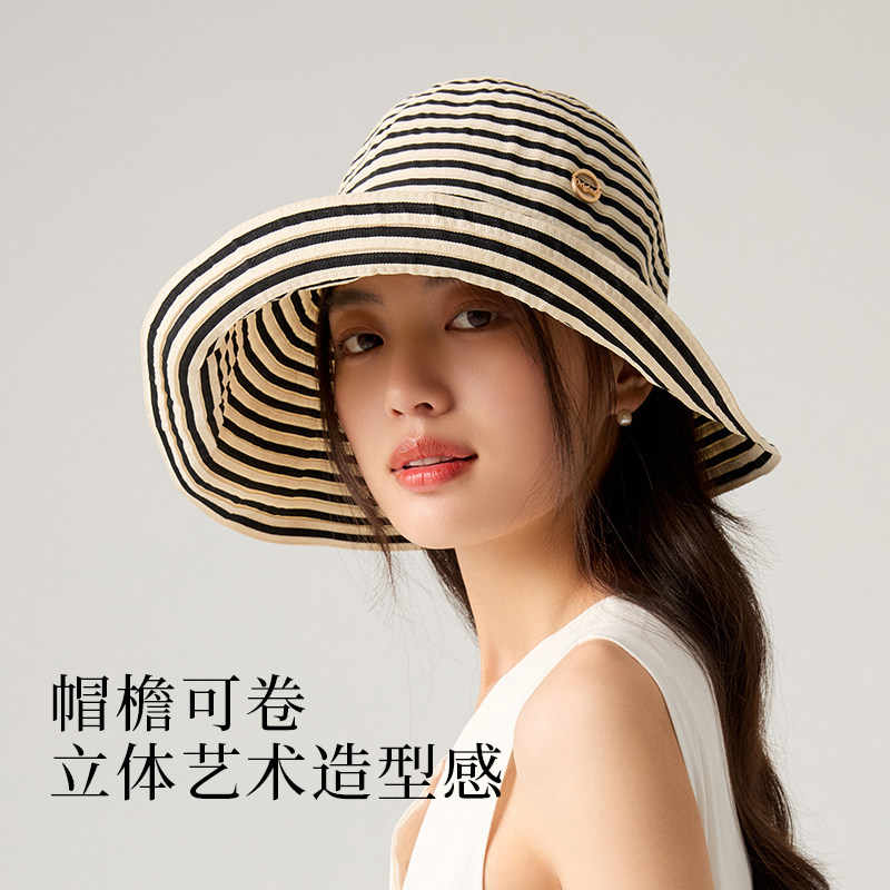 siggi 大檐防晒帽女防紫外线条纹渔夫遮阳帽时尚出游可折叠太阳帽