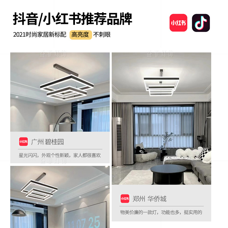 现代简约客厅吊灯餐厅卧室灯北欧大气方形中山灯具家用智能蜡烛