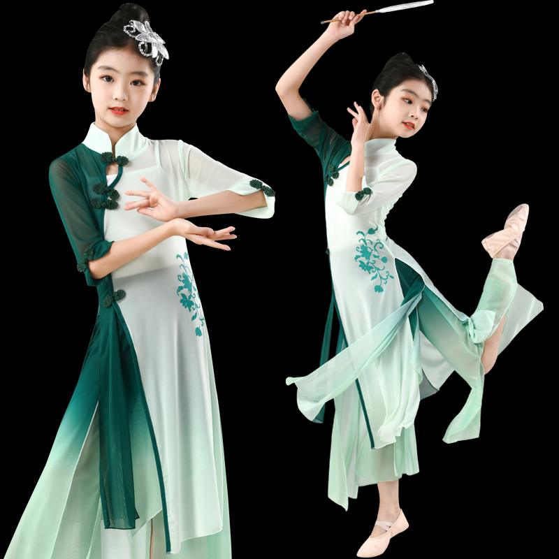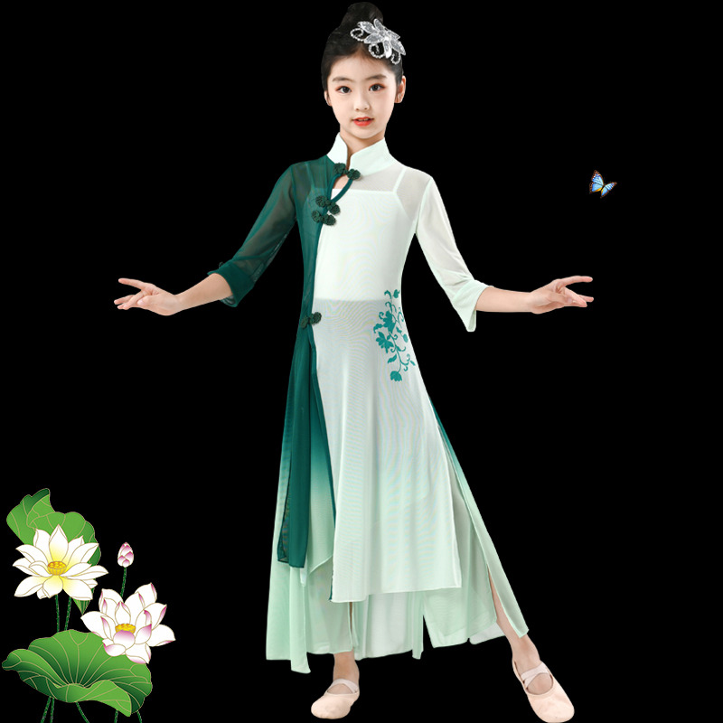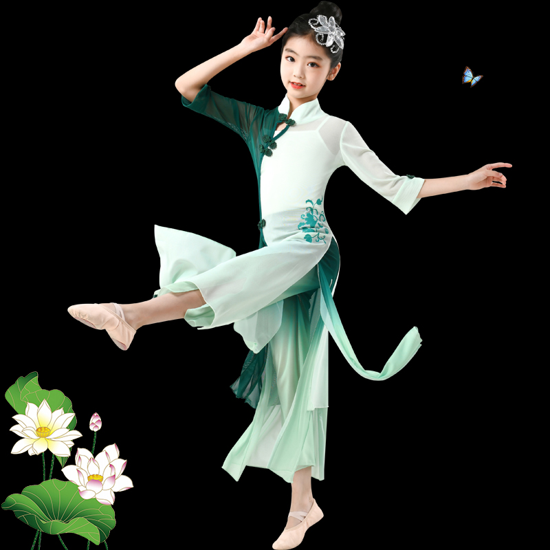 古典舞蹈服装女儿童茉莉花演出服飘逸少儿纱衣练功服扇子舞表演服