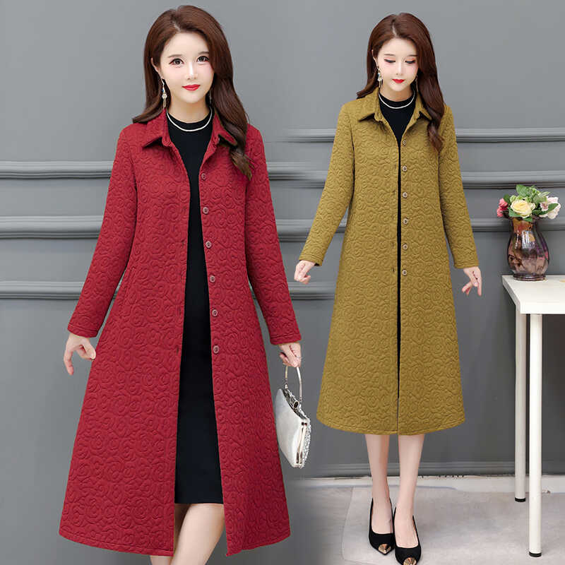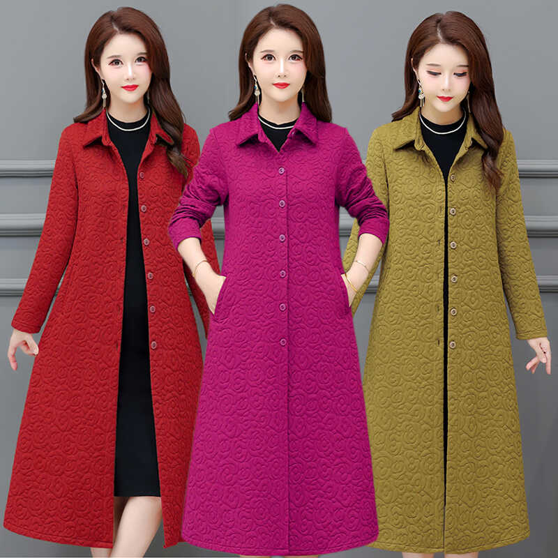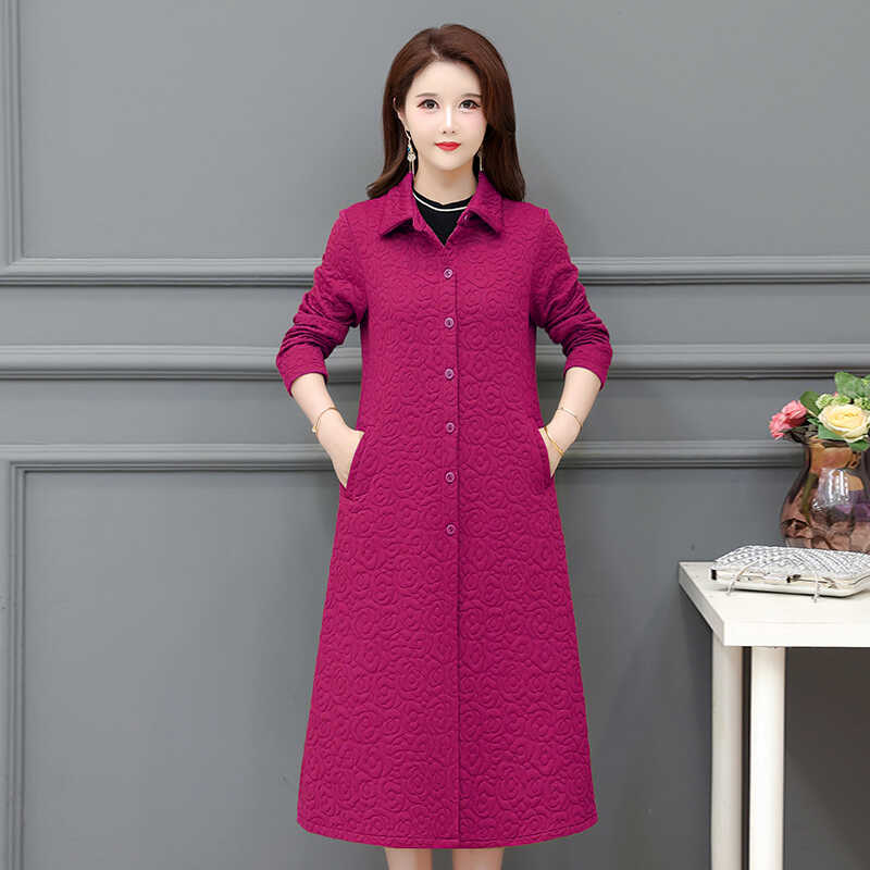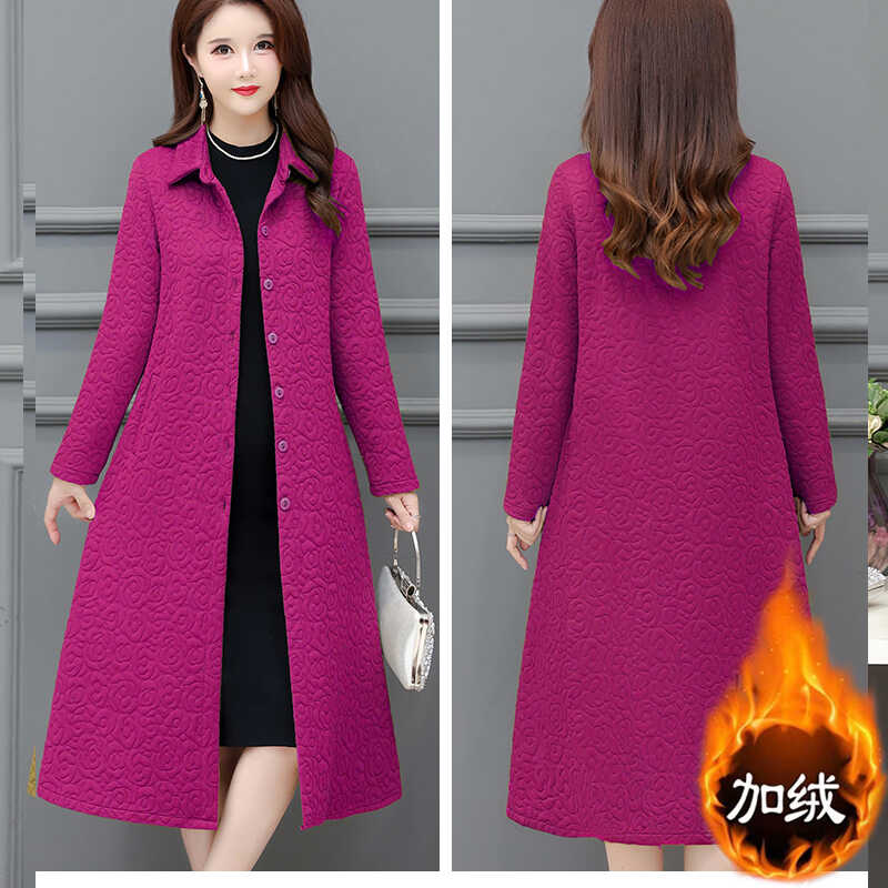 妈妈秋冬装加绒加厚风衣外套中长款时尚气质大码上衣中老年外套衫