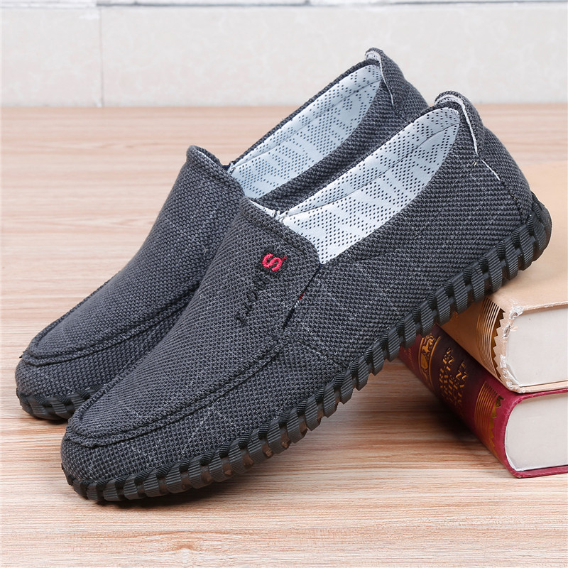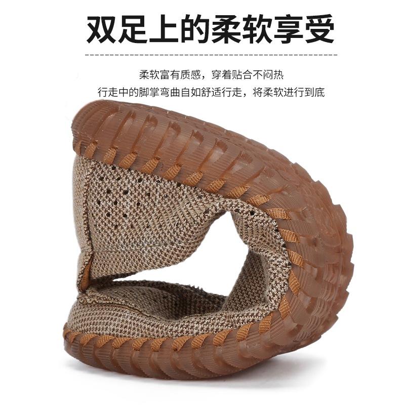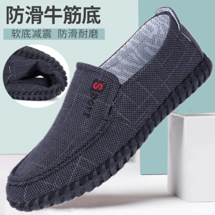 防滑牛筋底男鞋老北京布鞋透气亚麻布面一脚蹬休闲软底爸爸鞋子男