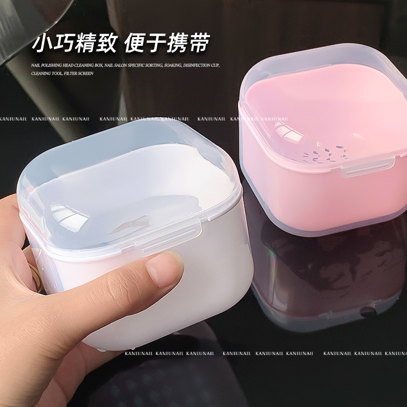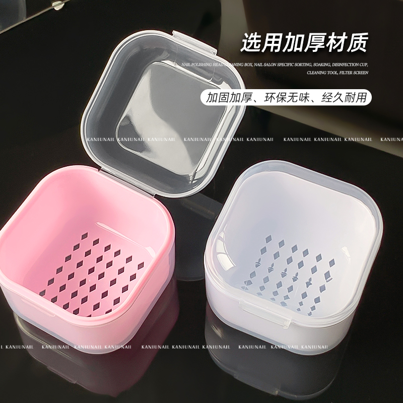 美甲工具打磨头消毒盒双层过滤加厚清洁盒便携式收纳盒美甲店专用