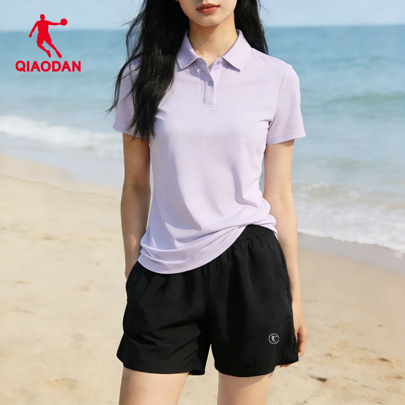 乔丹女士运动套装纯色短袖POLO领短裤两件套五分裤宽松休闲运动装