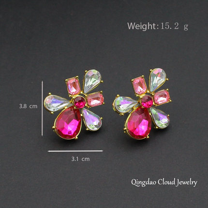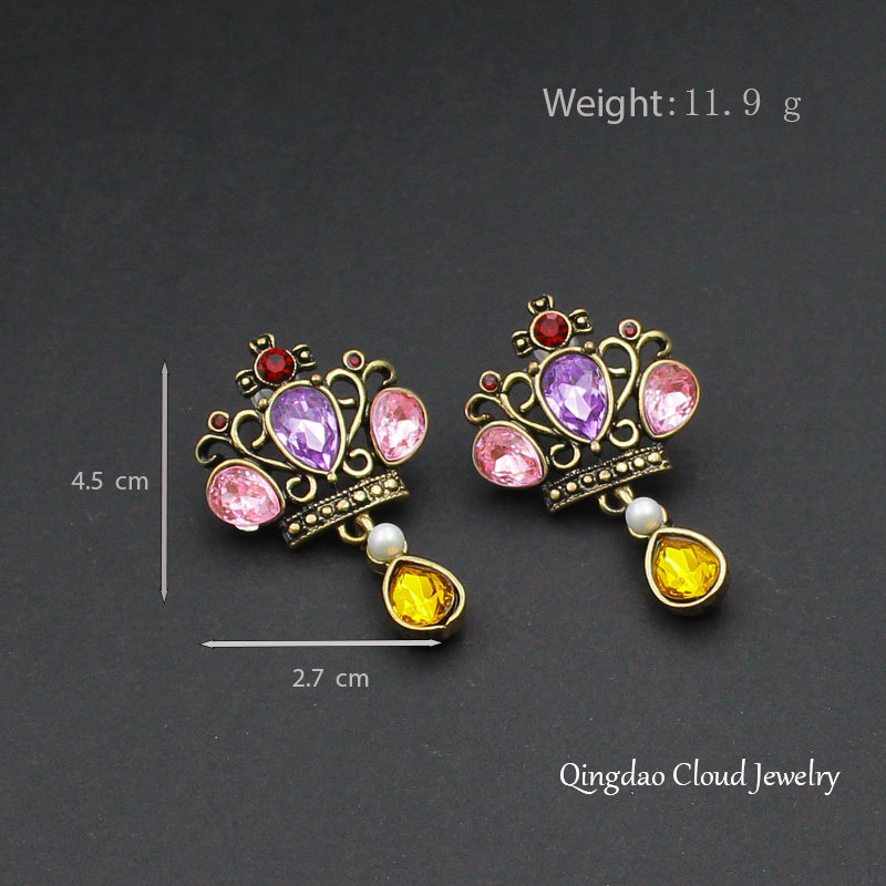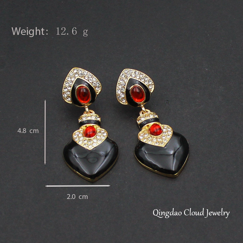 651-700中古耳环文艺复古经典大气高档耳饰珐琅滴油彩釉花朵 耳钉