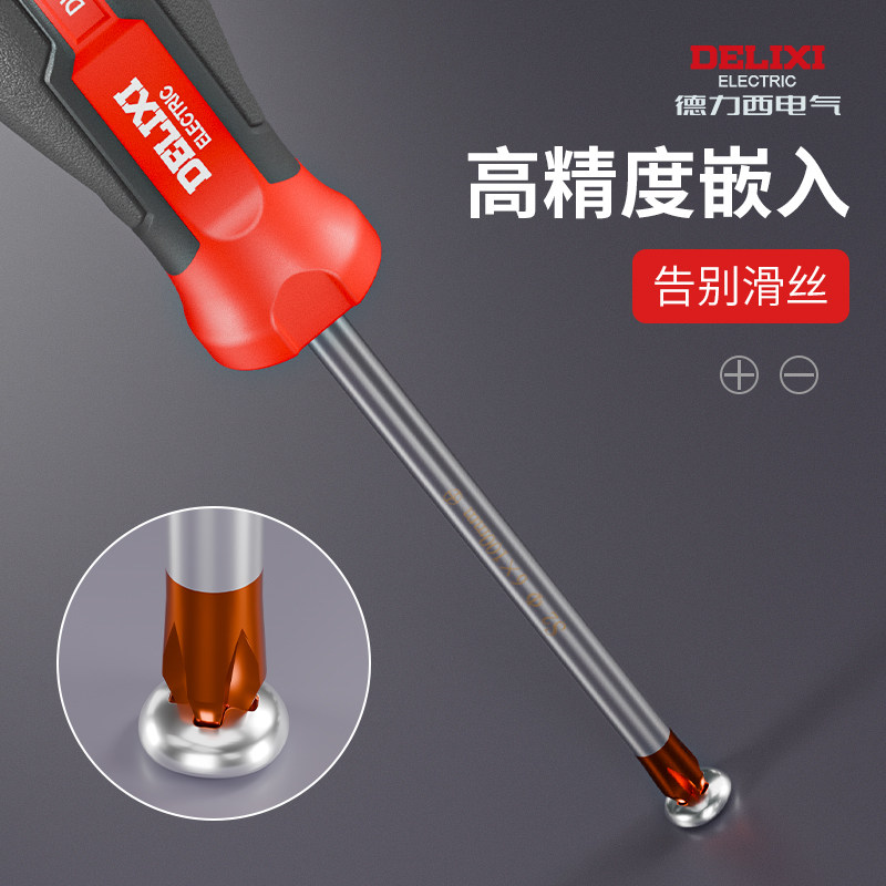 德力西螺丝刀带强磁平口一字起子改锥高硬度十字梅花维修小螺丝刀