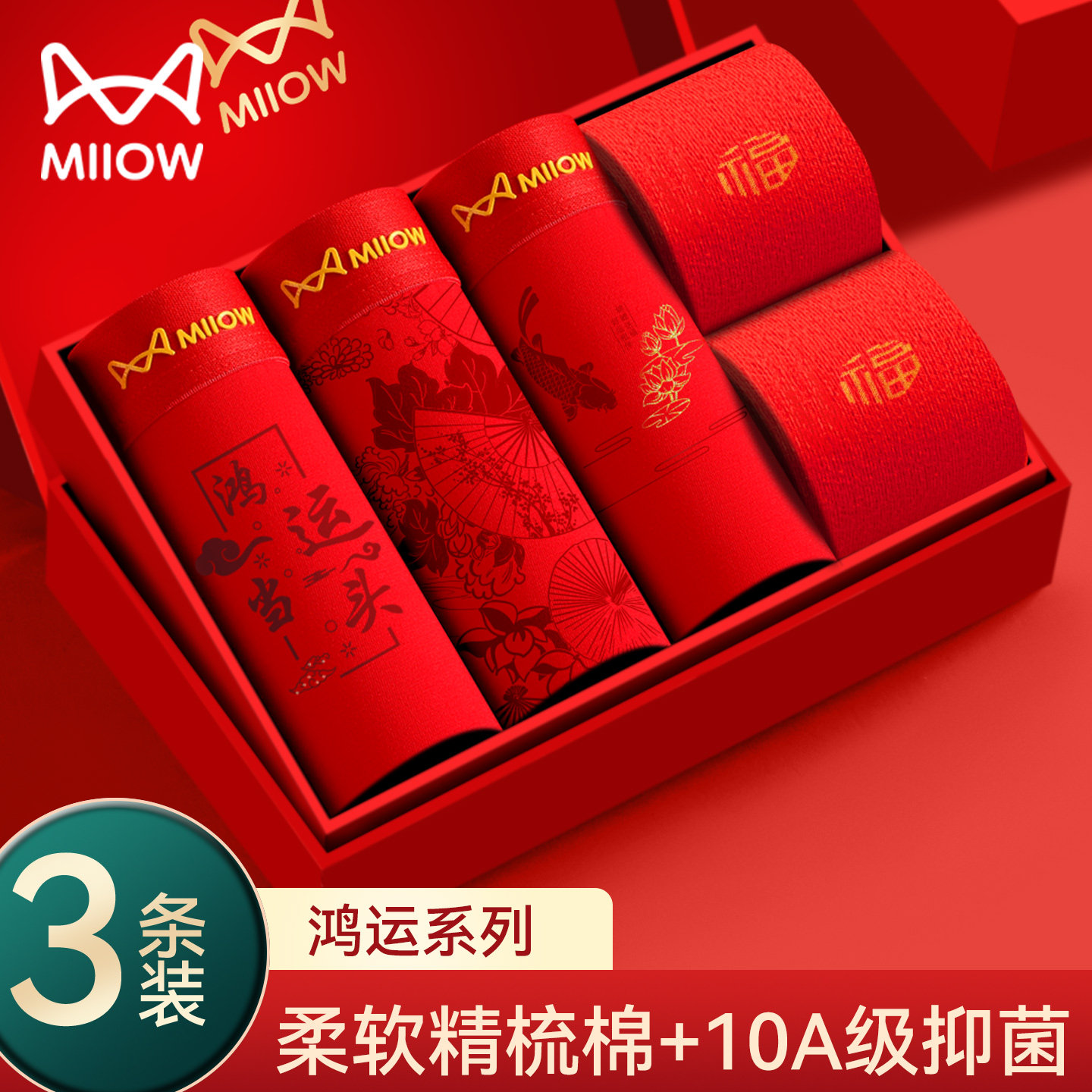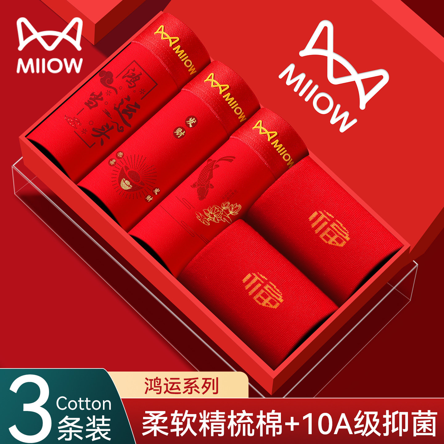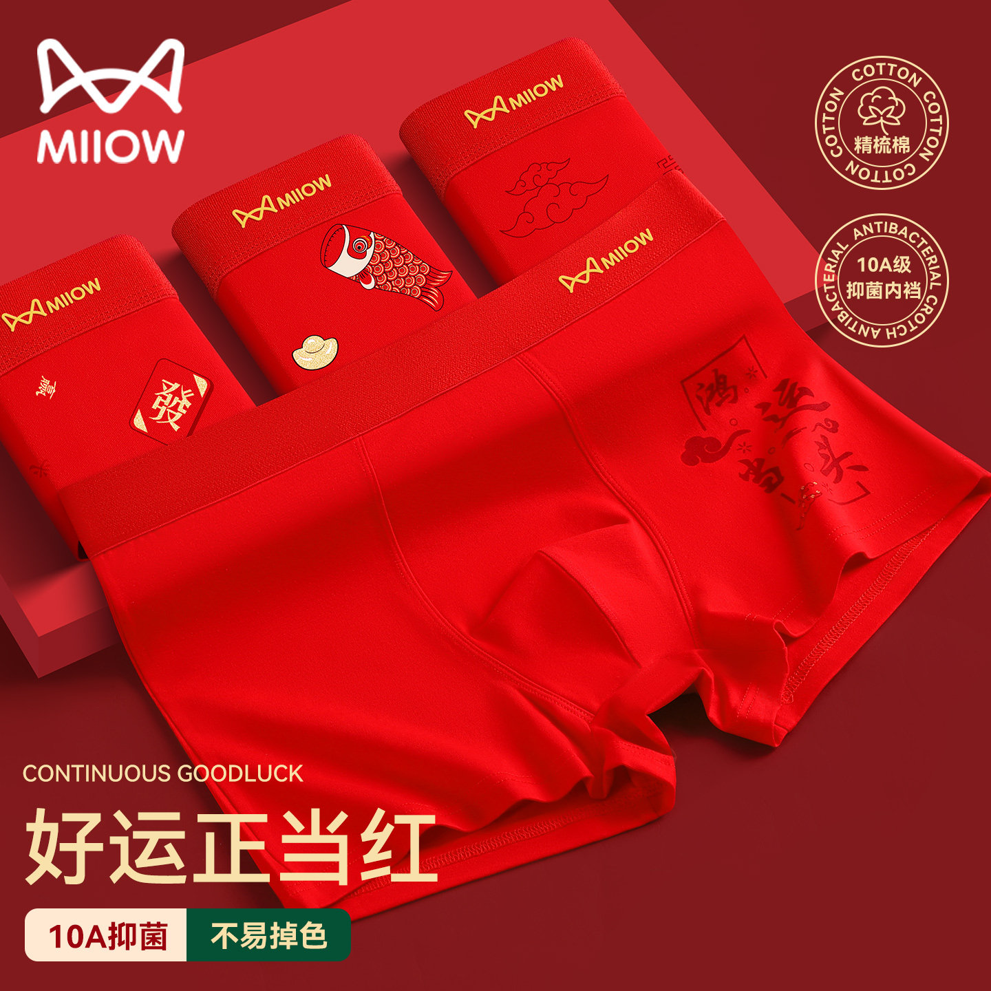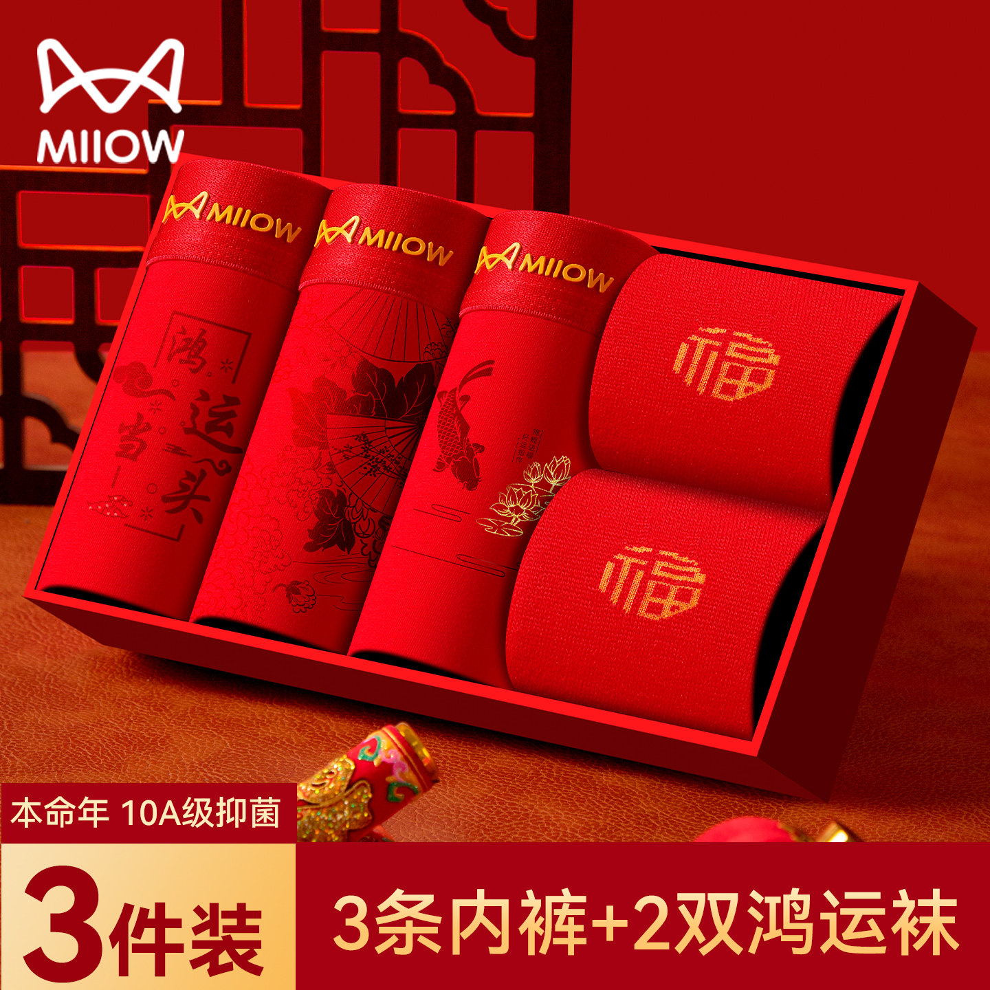 猫人本命年礼物男士内裤袜子纯棉四角裤2026马年大红色全棉平角裤