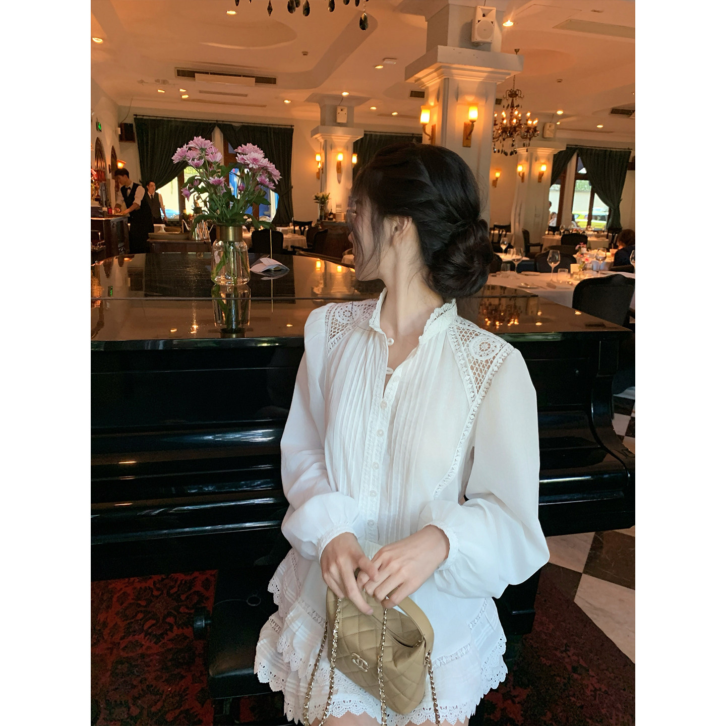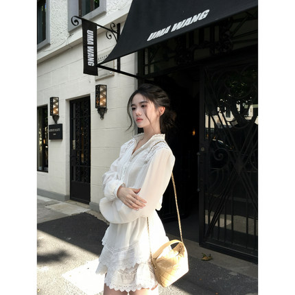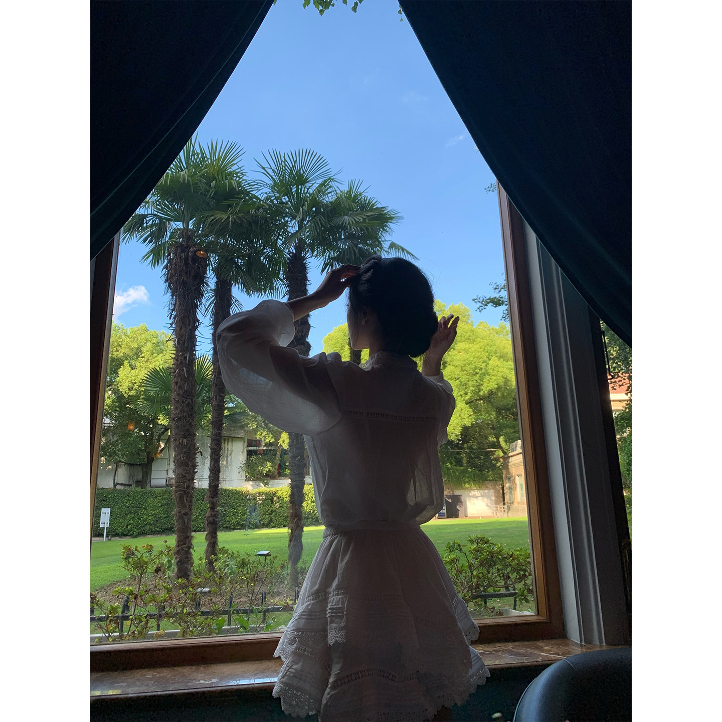 GYOKUU【曼城旧事】白色定做刺绣花边拼接衬衫/半身裙