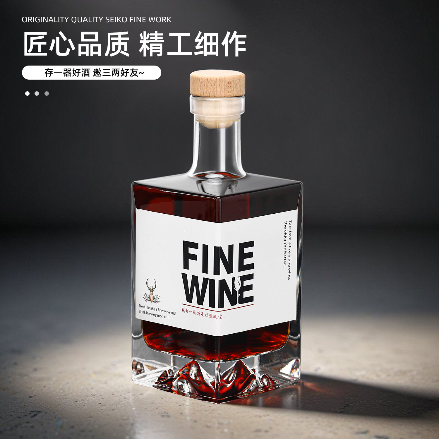 包邮山底方瓶玻璃酒瓶空新款高端瓶白酒瓶果酒瓶红酒葡萄酒瓶密封