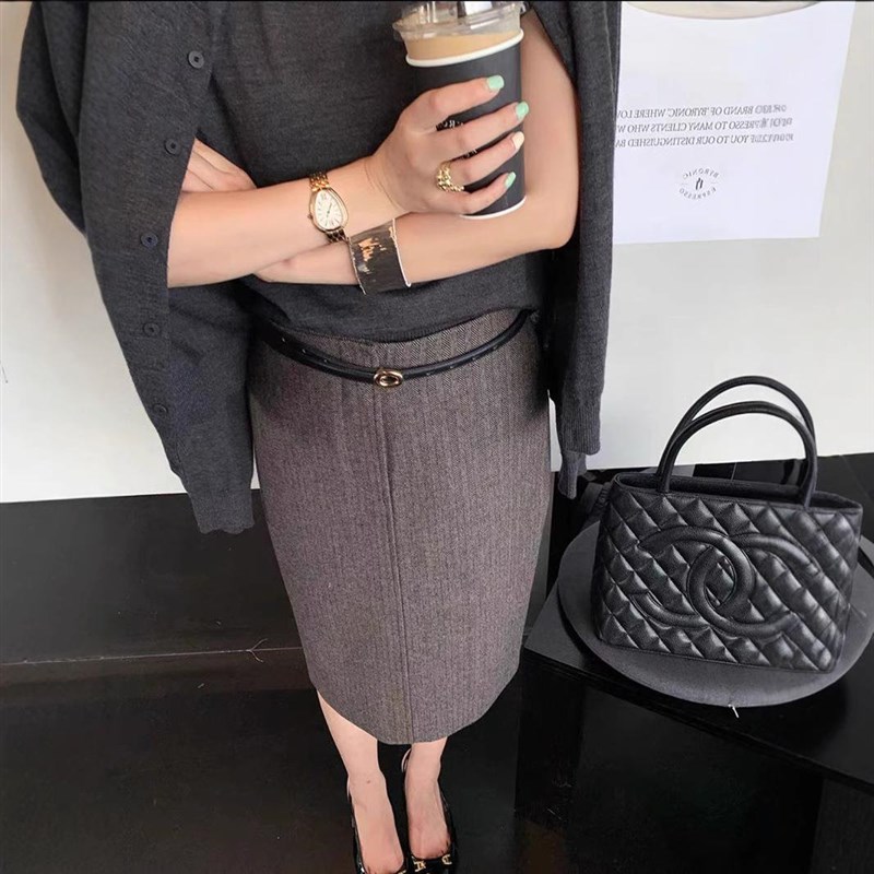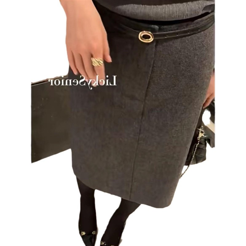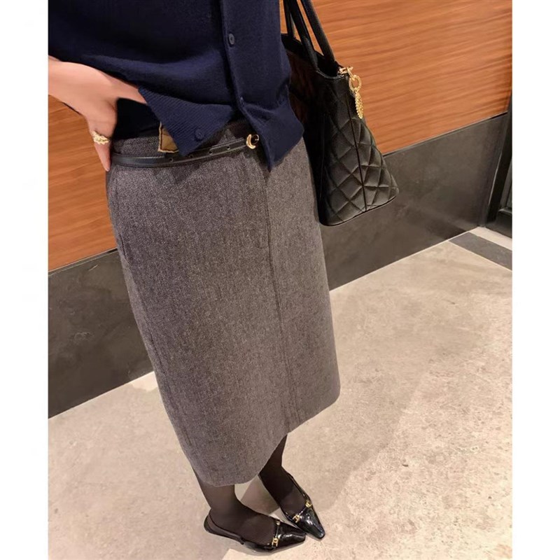法式人字纹毛呢半身裙女2024秋冬新款复J古高腰直筒裙中长款包臀