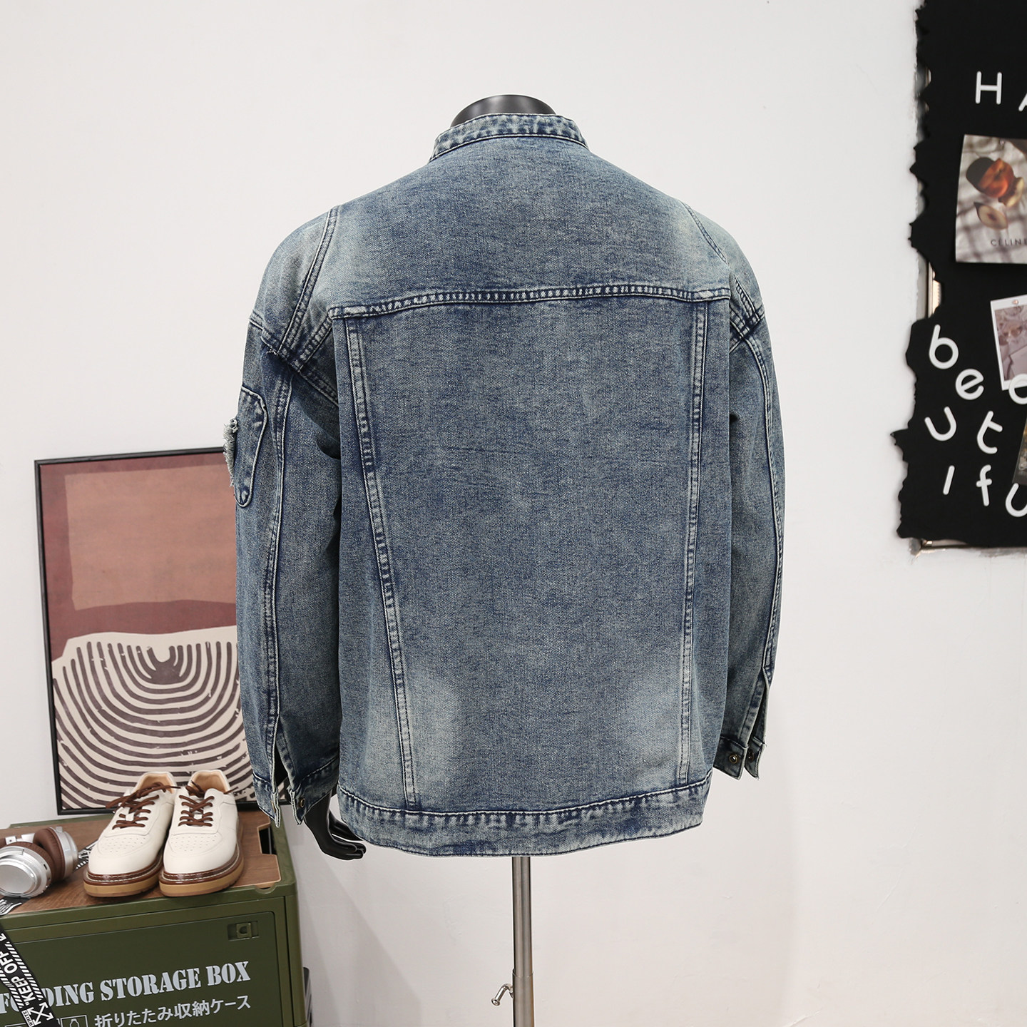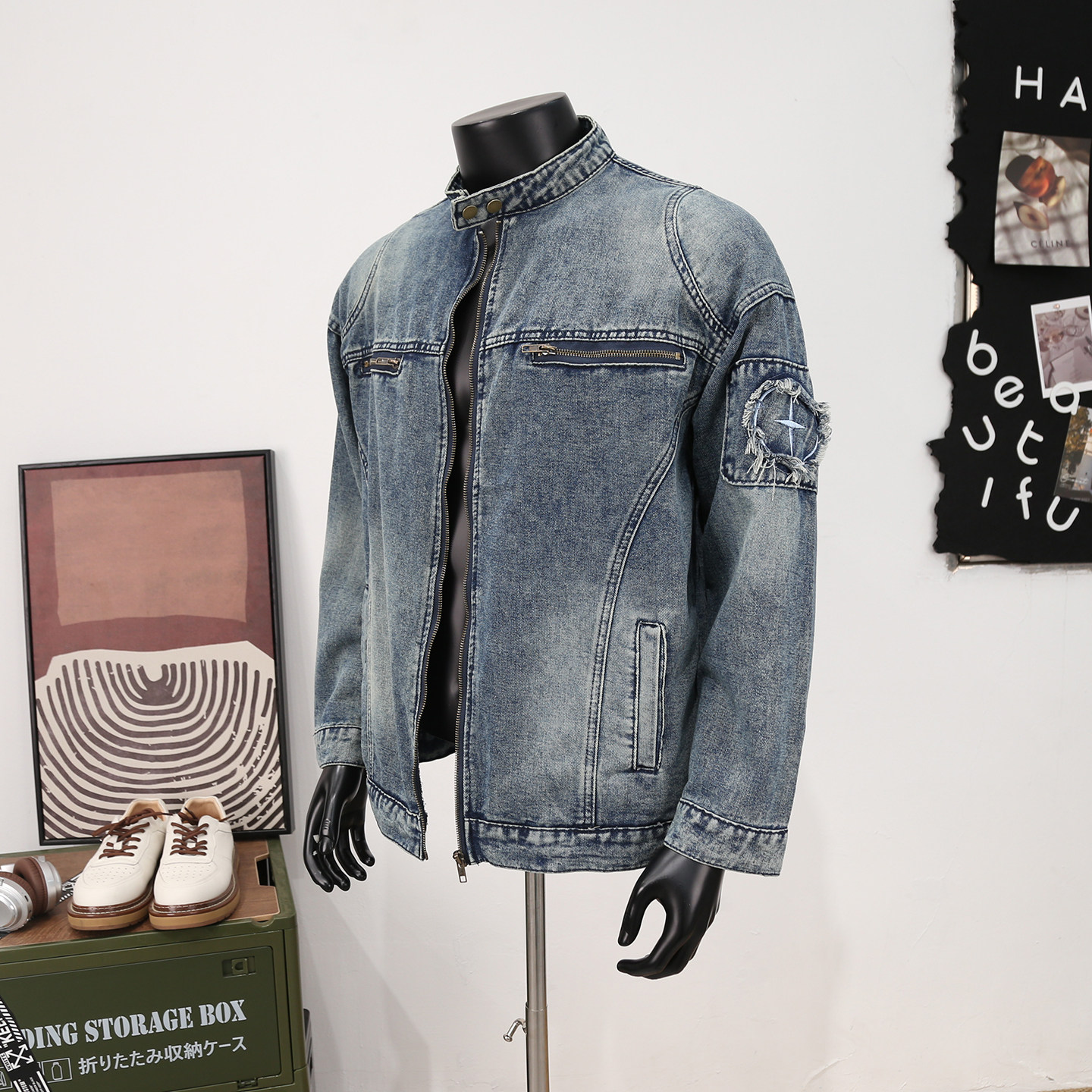 高街痞帅拉链贴布牛仔夹克男