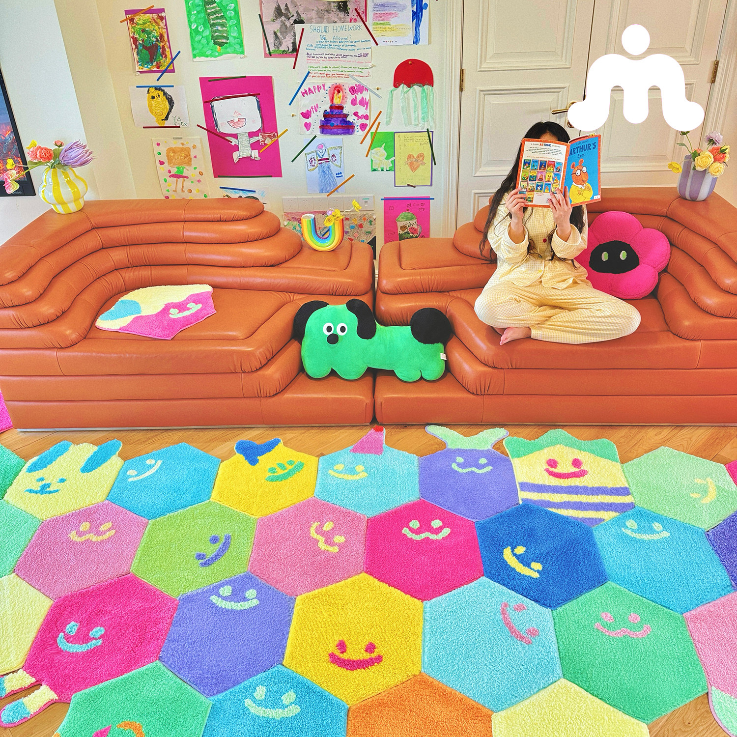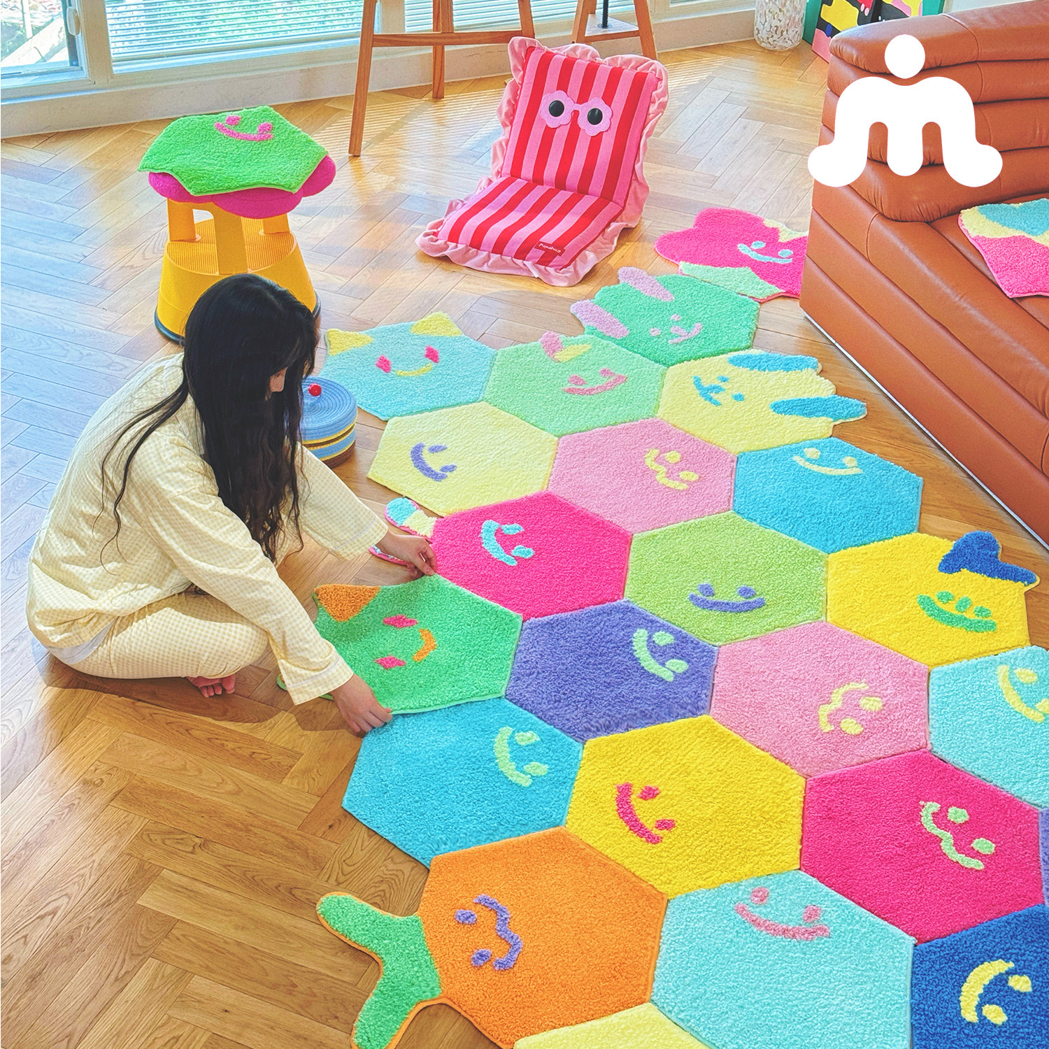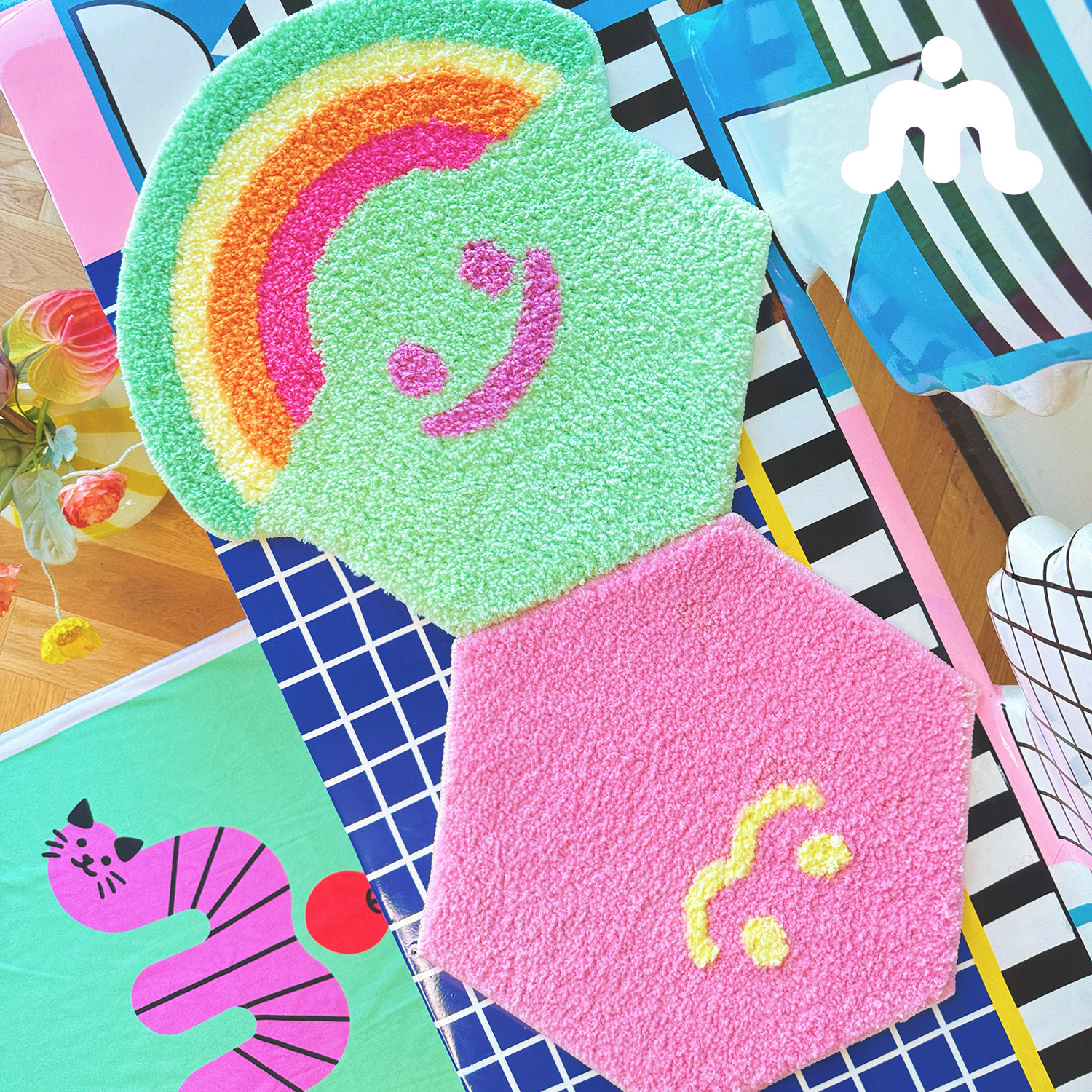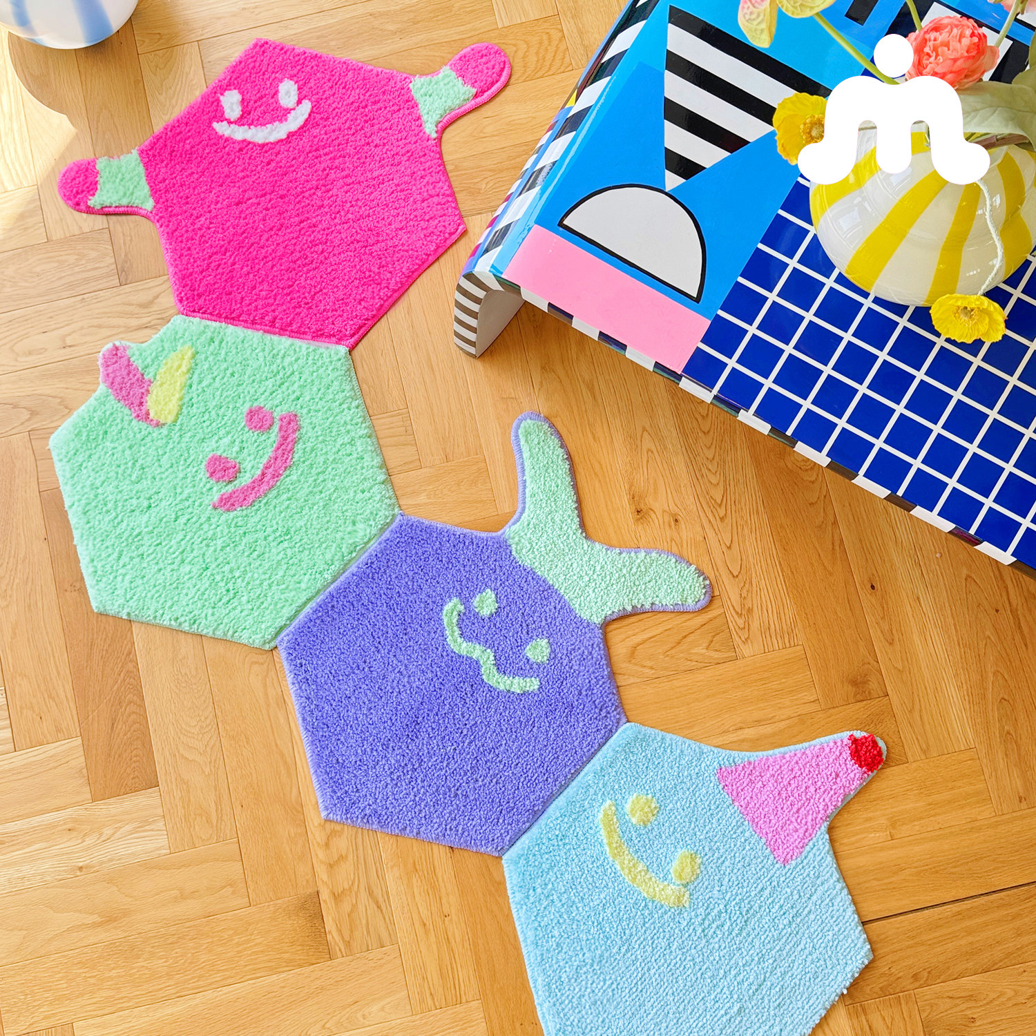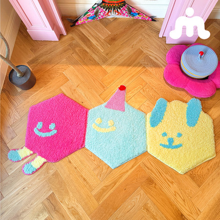 告别撞款烦恼】六边形地毯任意拼 卧室客厅《双虫人格》原创