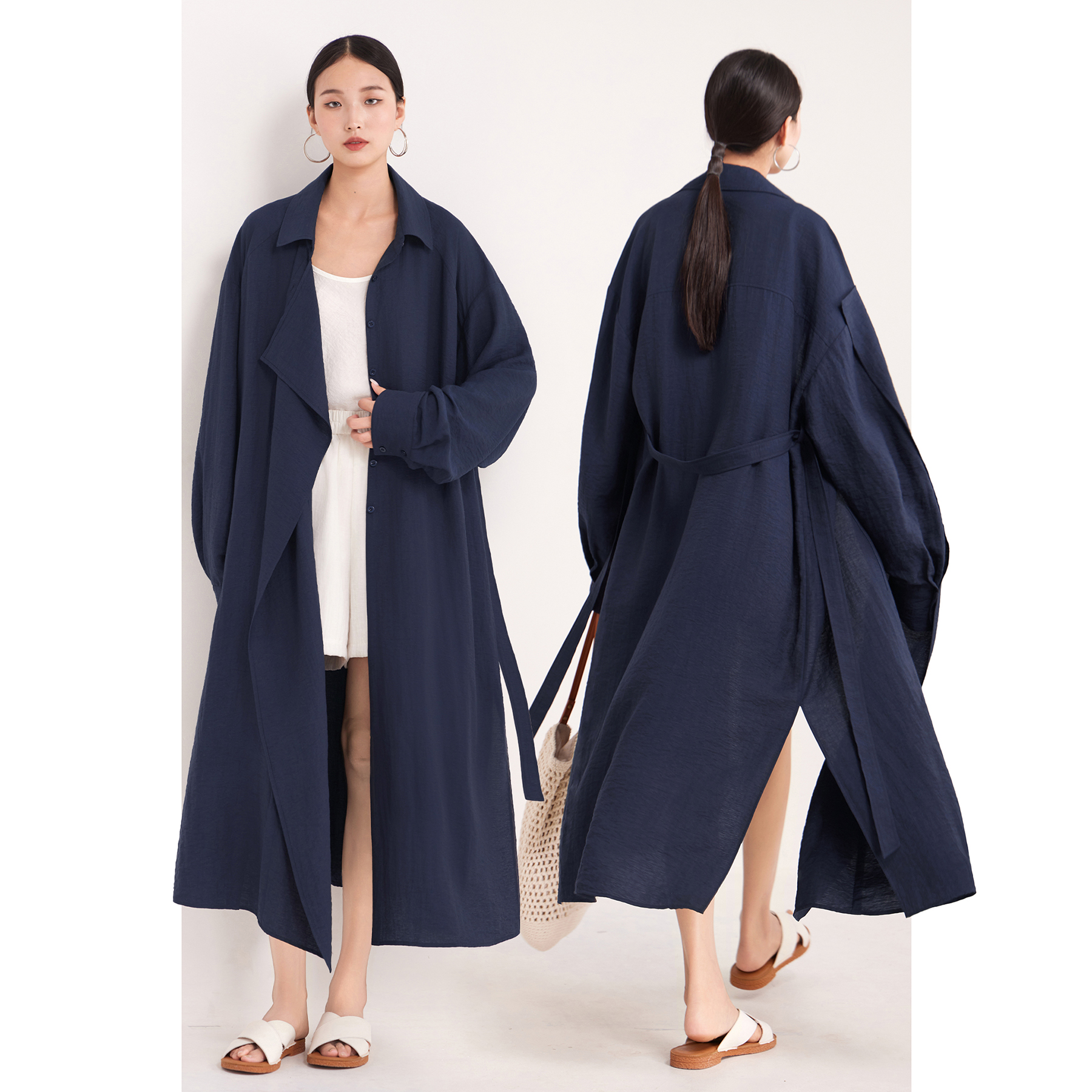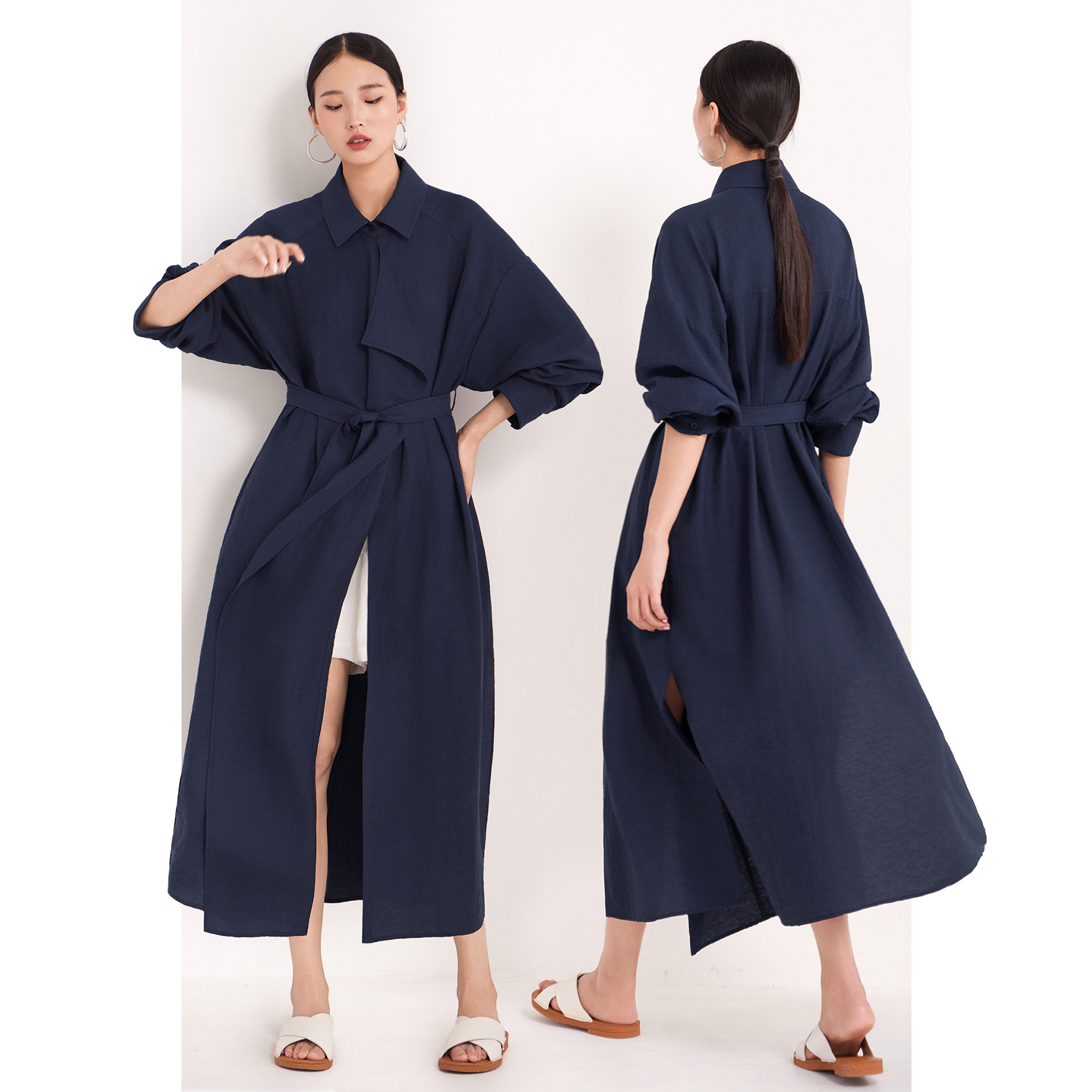 亚麻风衣外套早秋新款宽松老钱风独特设计休闲气质设计感中长款