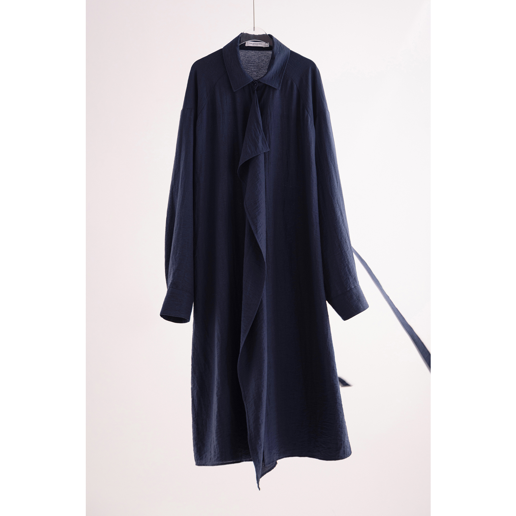 CR藏蓝衬衫领荷叶边长袖风衣外套