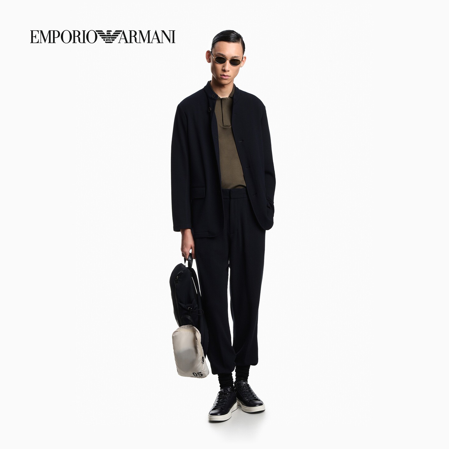 EMPORIO ARMANI/阿玛尼26年春夏新款男士宽松锥形松弛感微弹卫裤