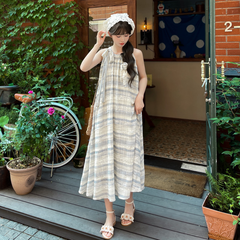 森女部落原创无袖款波西米亚沙滩长裙连衣裙2025年夏季新款女装