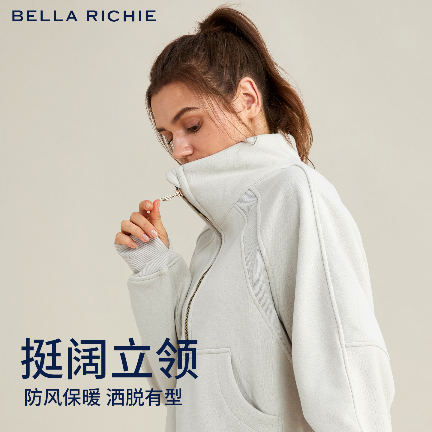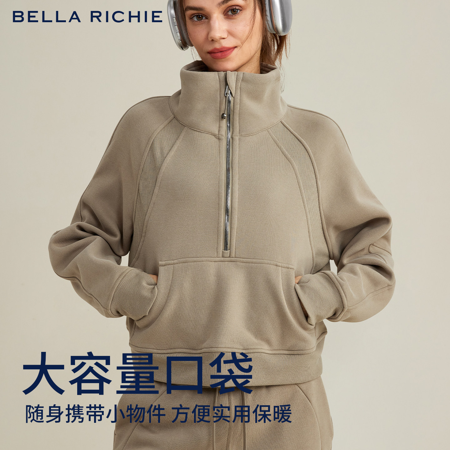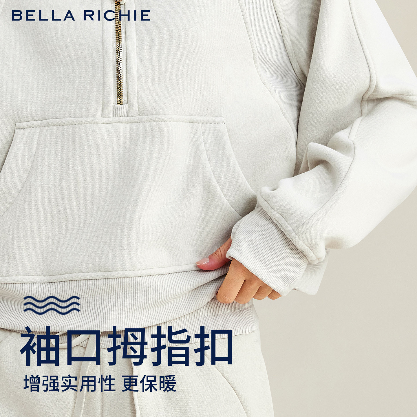 BR加绒加厚宽松保暖晨跑步套头瑜伽服卫衣外套防风立领运动健身女