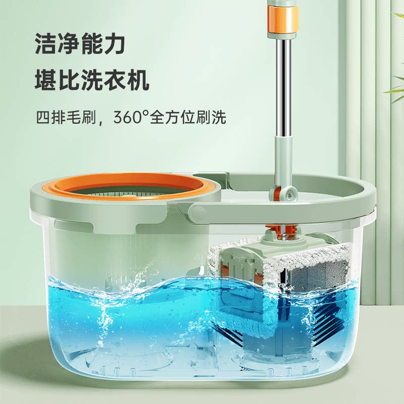 双拖|旋转拖把免手洗家用拖把带桶懒人吸水平板拖把套装拖地神器