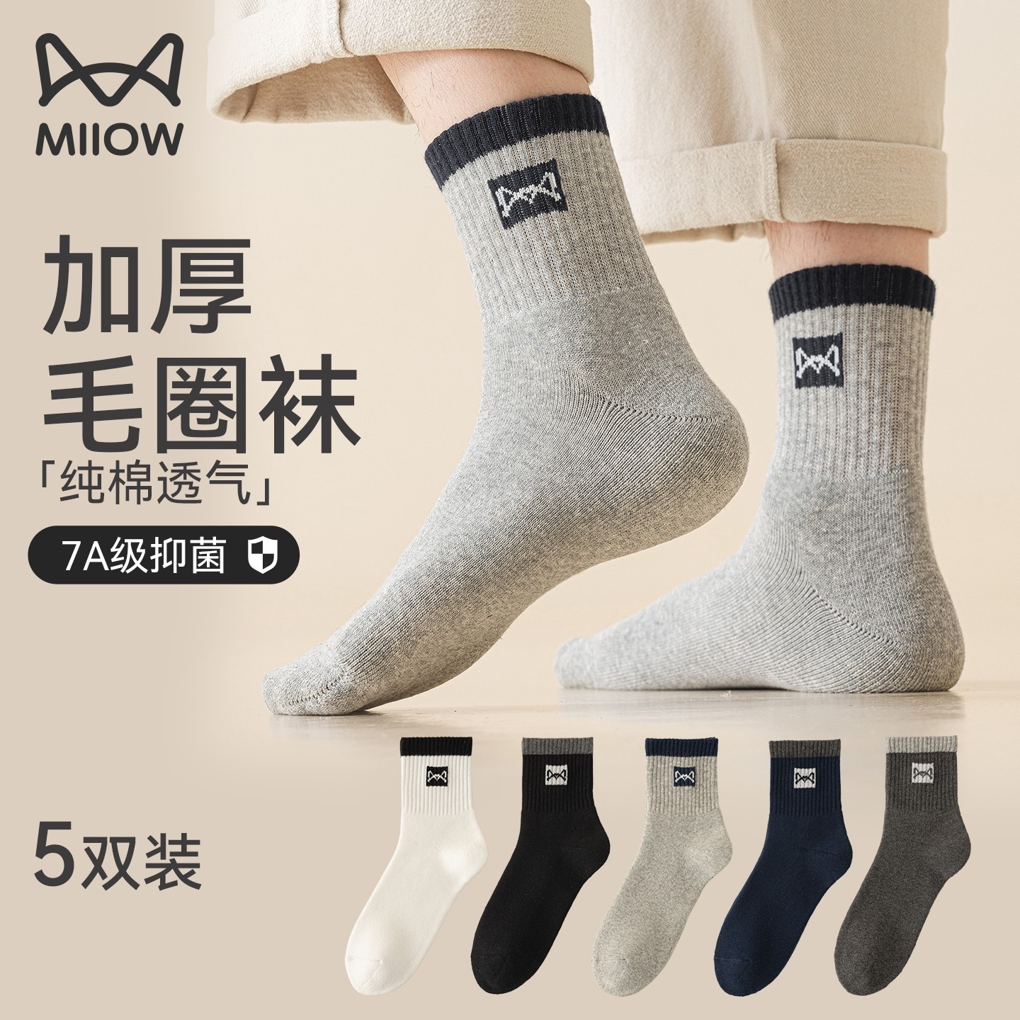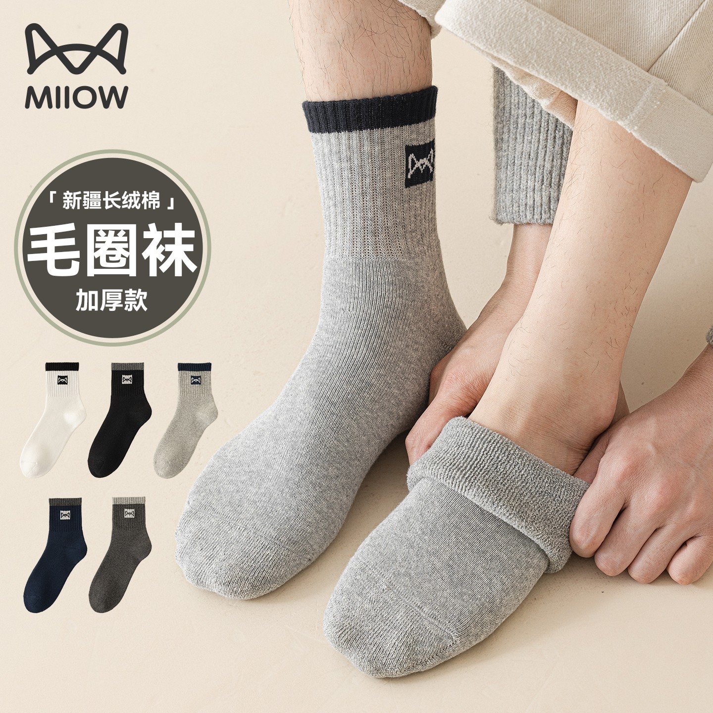 猫人袜子男士纯棉中筒冬季加厚