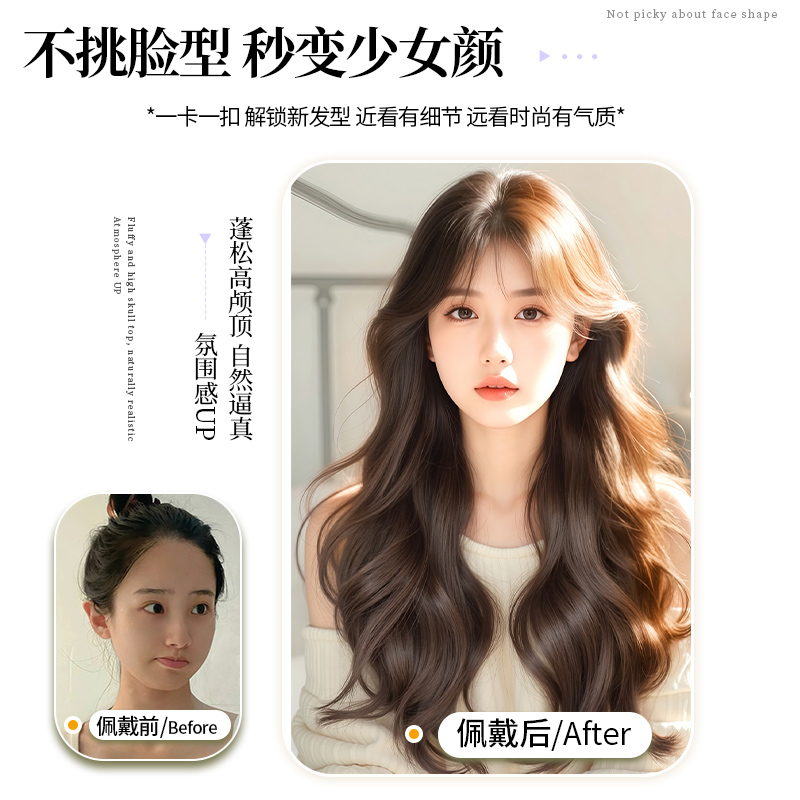 假发女全头套头顶补发蓬松高颅顶自然无痕仿真发大波浪卷发假发套
