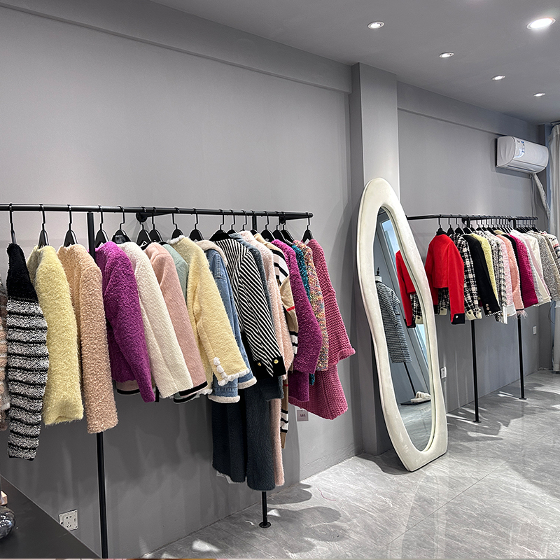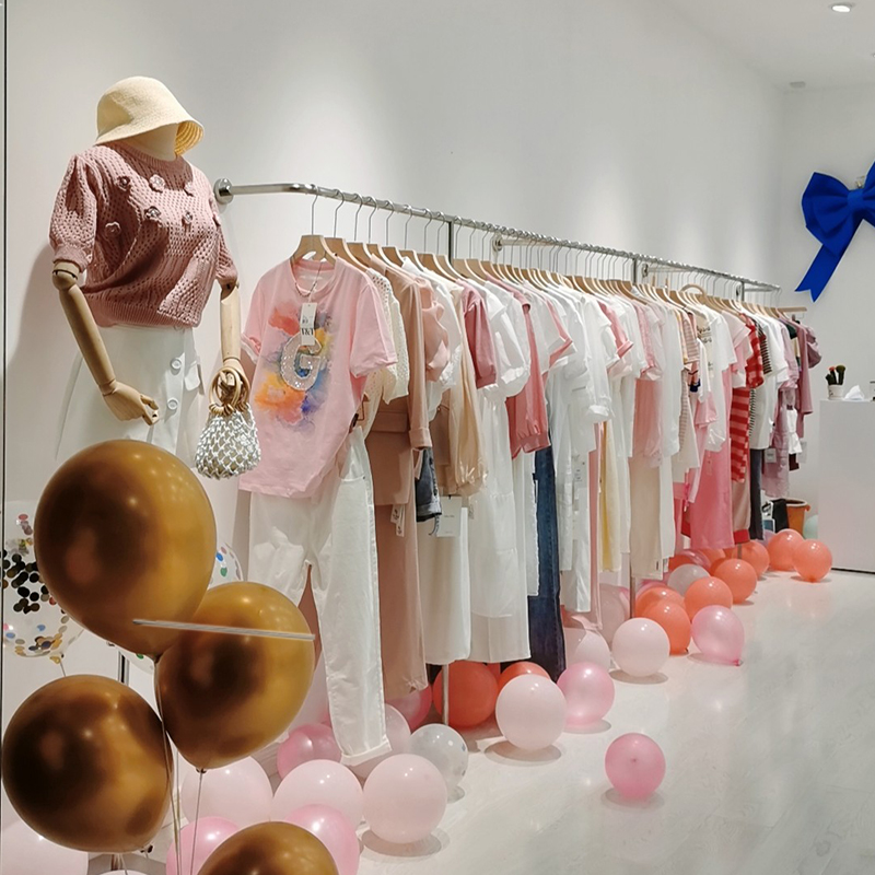 服装店展示架陈列架不锈钢银色挂衣架童女装货架落地式上墙衣服架