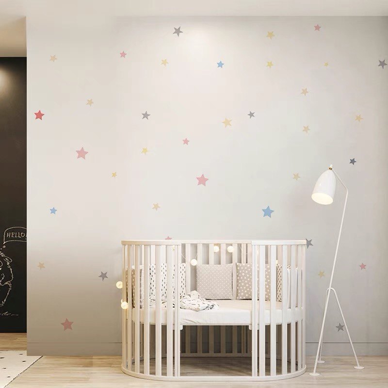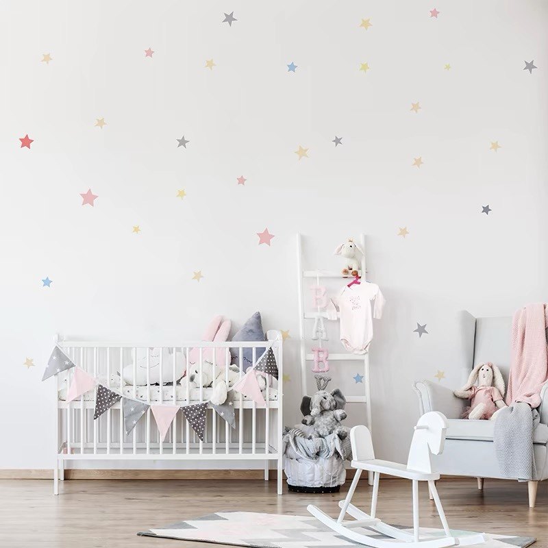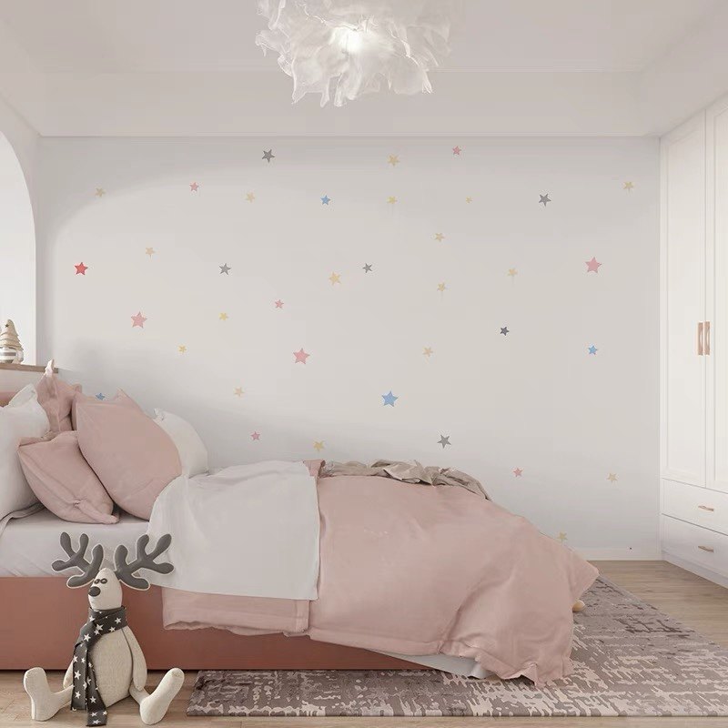 彩色星星墙纸儿童房墙布女孩卧室壁纸简约幼儿园壁布公主房壁画