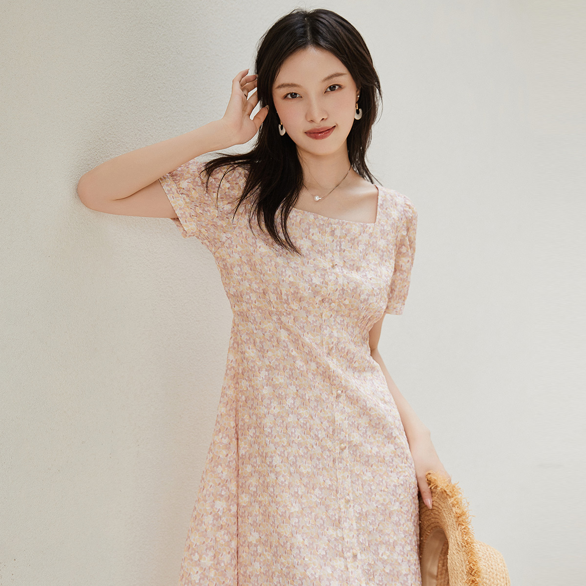 D.SIGN商场同款 法式方领碎花连衣裙女2023夏新款温柔风气质长裙