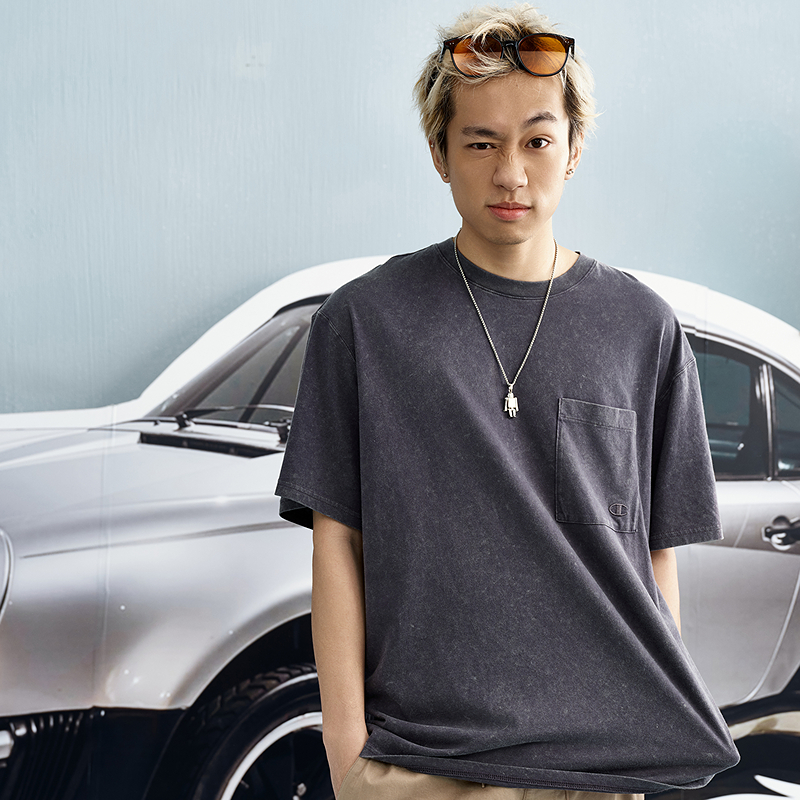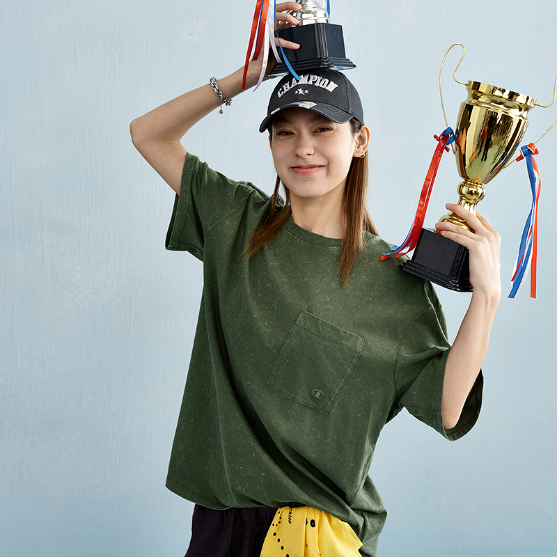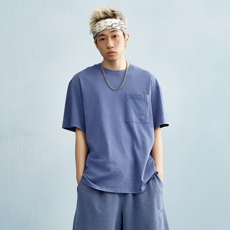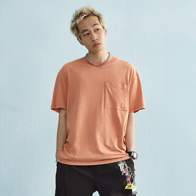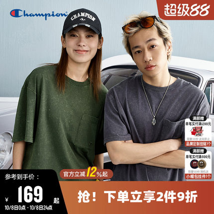 Champion冠军T恤男2025夏季新款做旧纯色复古圆领运动短袖上衣女