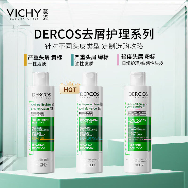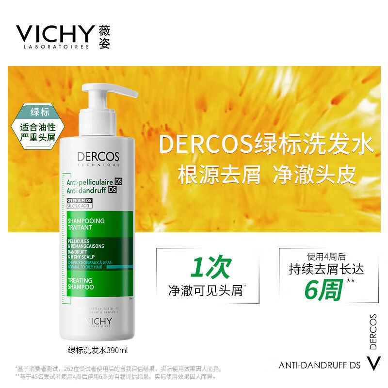 薇姿绿标洗发水控油蓬松dercos二硫化硒洗发露去屑舒缓头痒洗头水