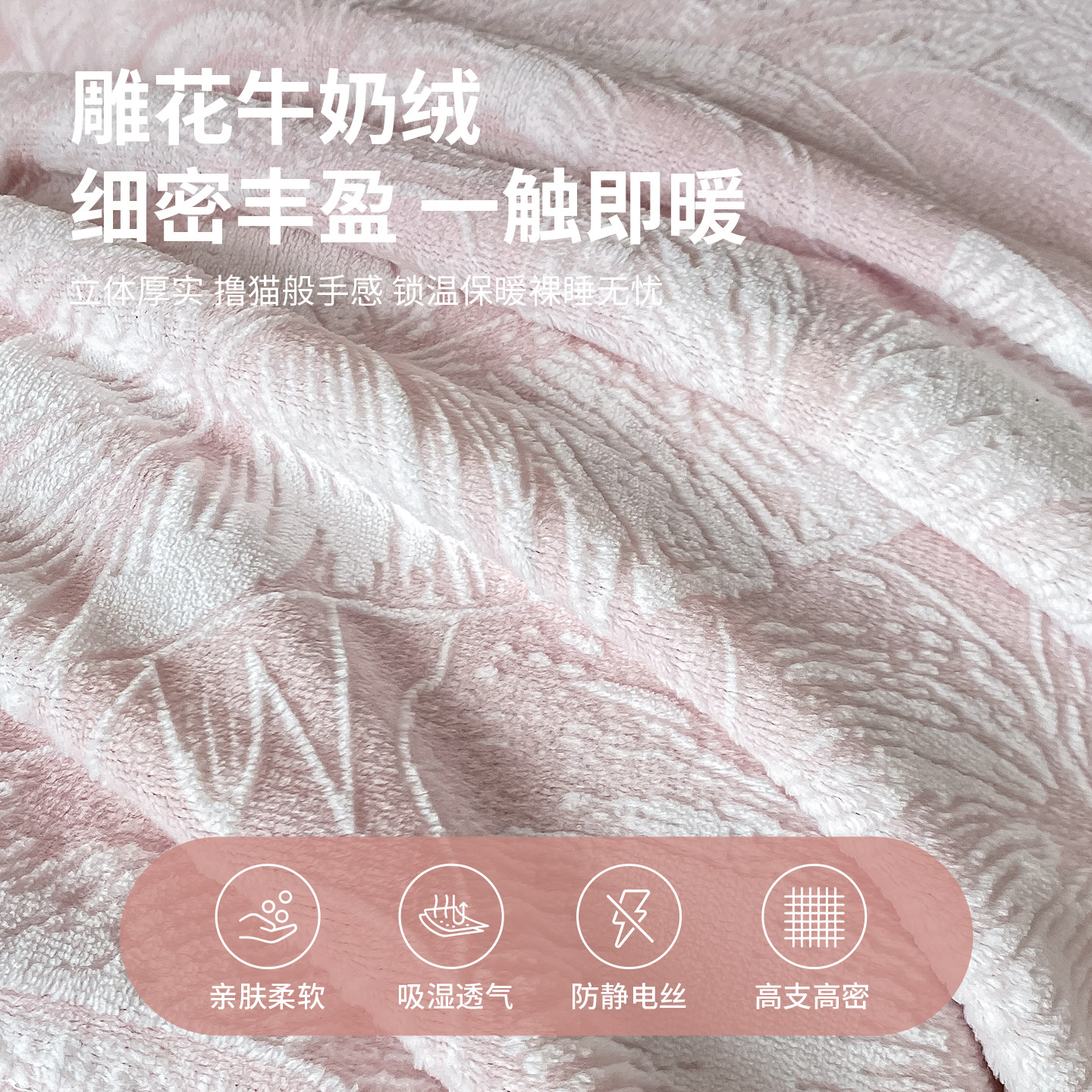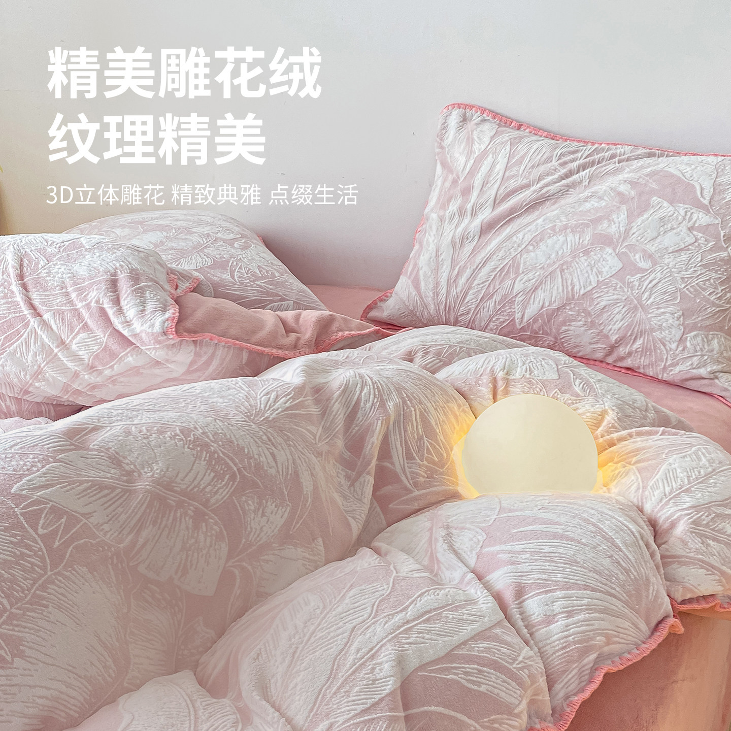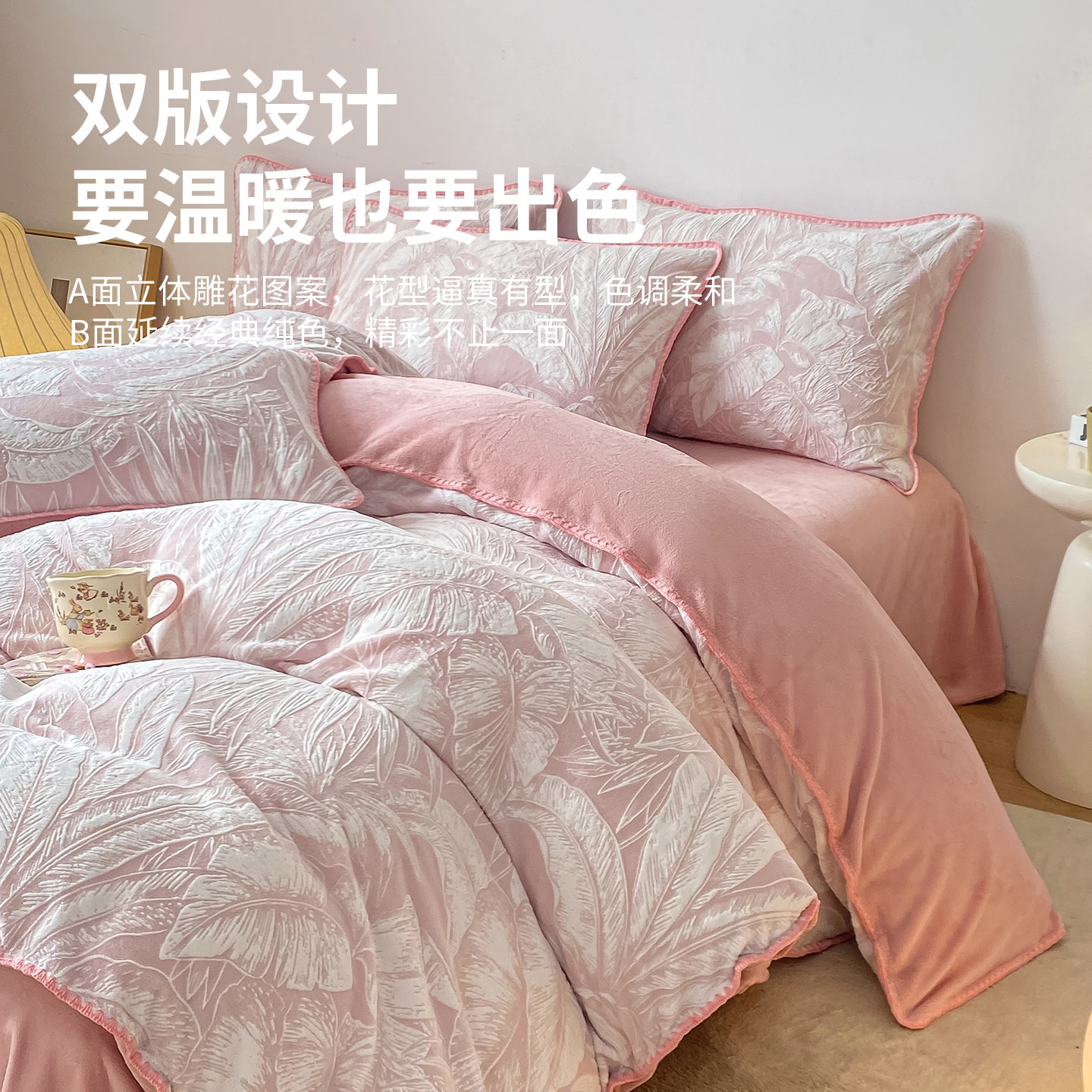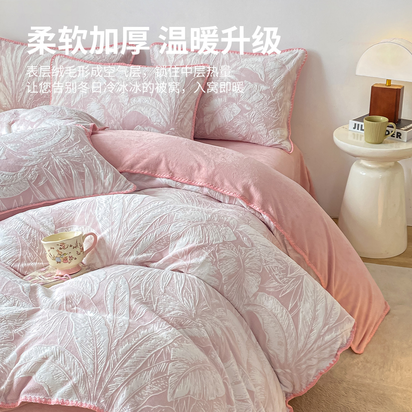红豆牛奶绒雕花四件套