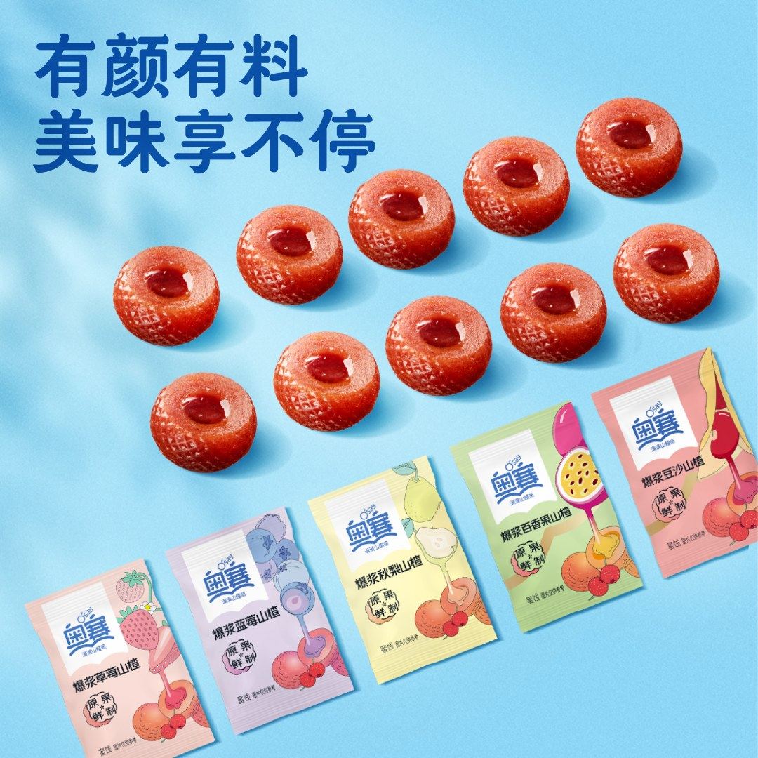 奥赛爆浆山楂球办公室零食百香果草莓蓝莓秋梨水果浆零食独立包装