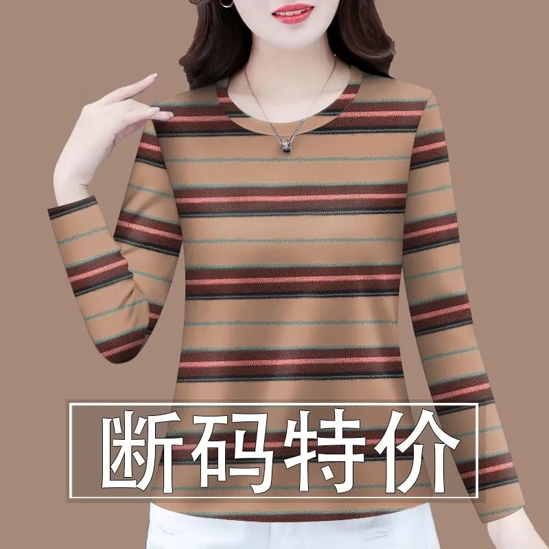 清仓捡漏外贸打底衫女春秋长袖t恤女中老年妈妈洋气秋衣外穿上衣