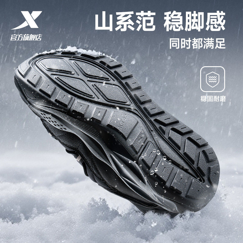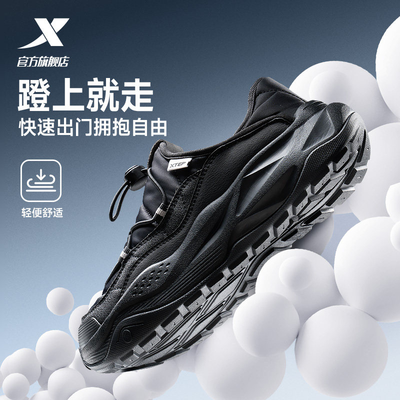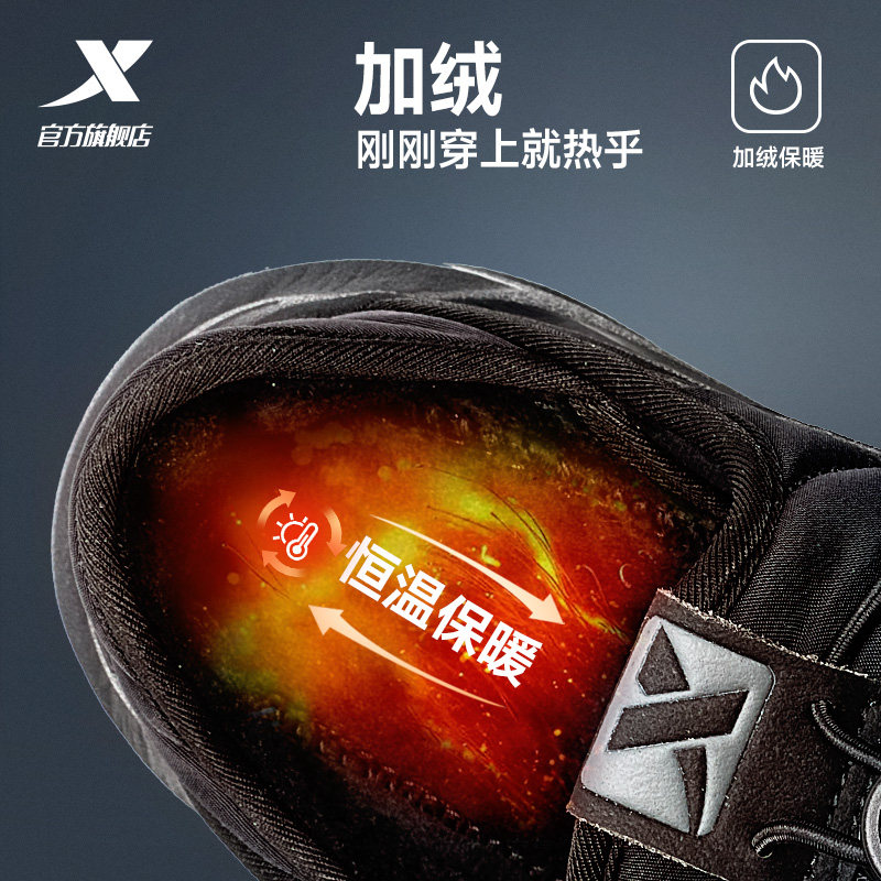 特步有暖气棉鞋男冬季加绒保暖情侣一脚蹬半拖休闲鞋女鞋运动鞋子