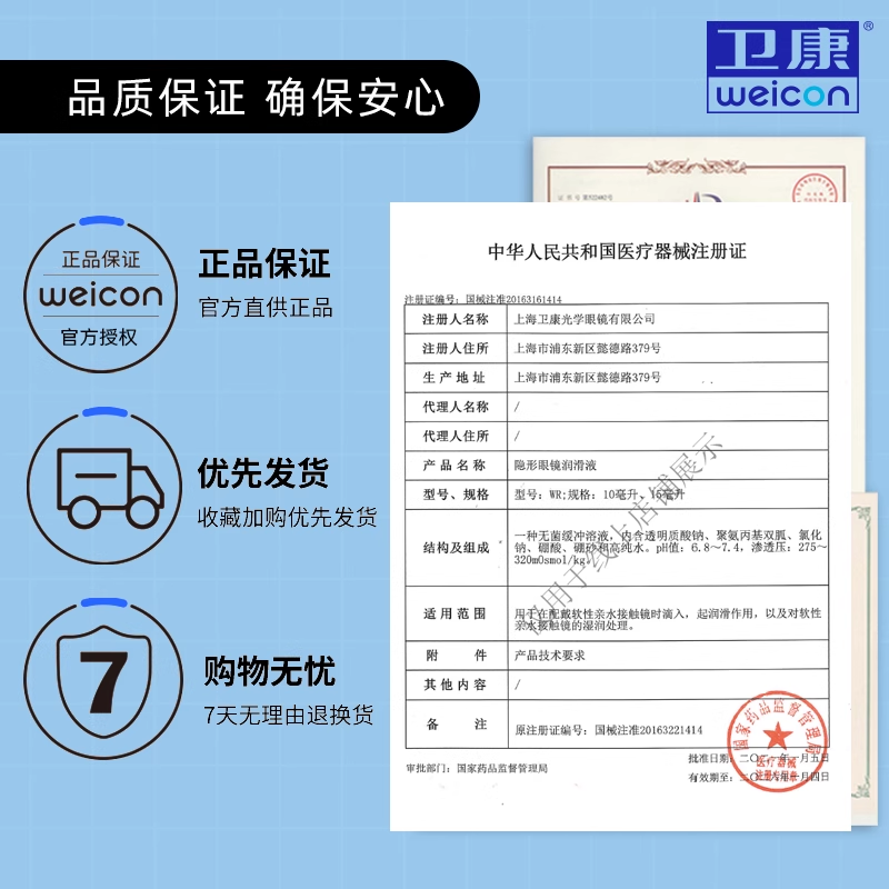 卫康玻尿酸隐形近视眼镜润眼液润滑液10ml温和水润保湿官方旗舰店