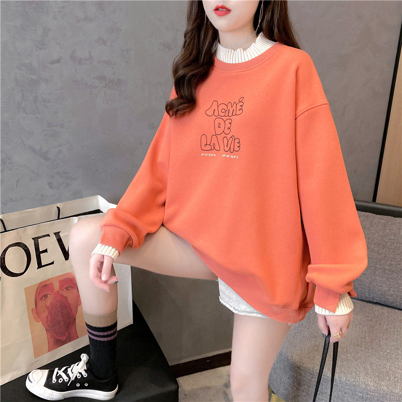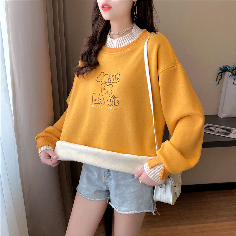 半高领加绒加厚卫衣女秋冬2025新款宽松韩版假两件拼接套头上衣服