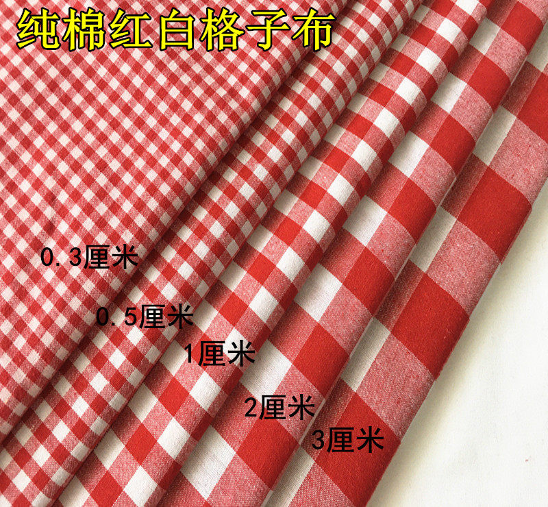 纯棉格子布料服装面料蓝白红白小方格衬衣桌布窗帘布手工diy面料