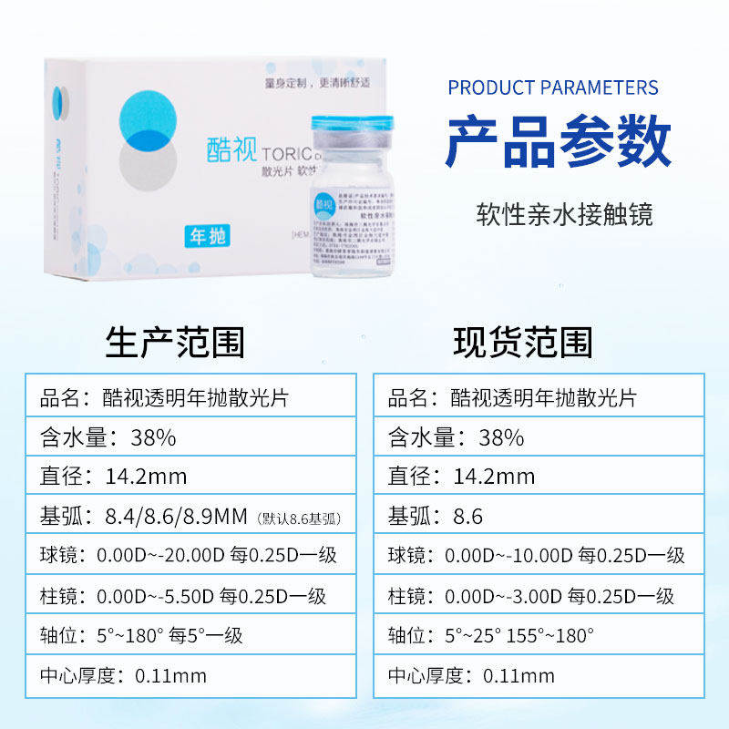 酷视散光专业定制片年抛1片装高散隐形近视眼镜订制近视散光片